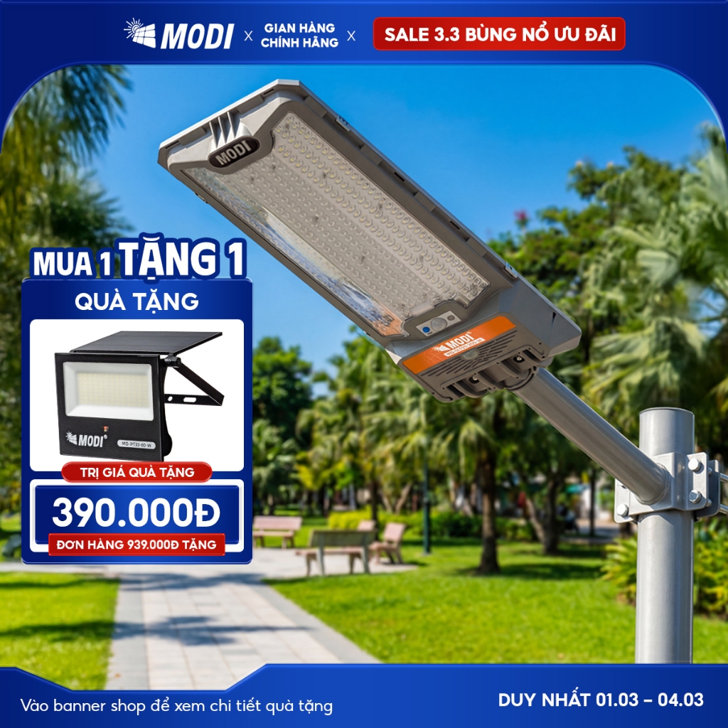 Đèn Liền Thể Năng Lượng Mặt Trời MODI SOLAR Cảm Biến Ánh Sáng, Góc Chiếu Sáng Rộng Siêu Sáng
