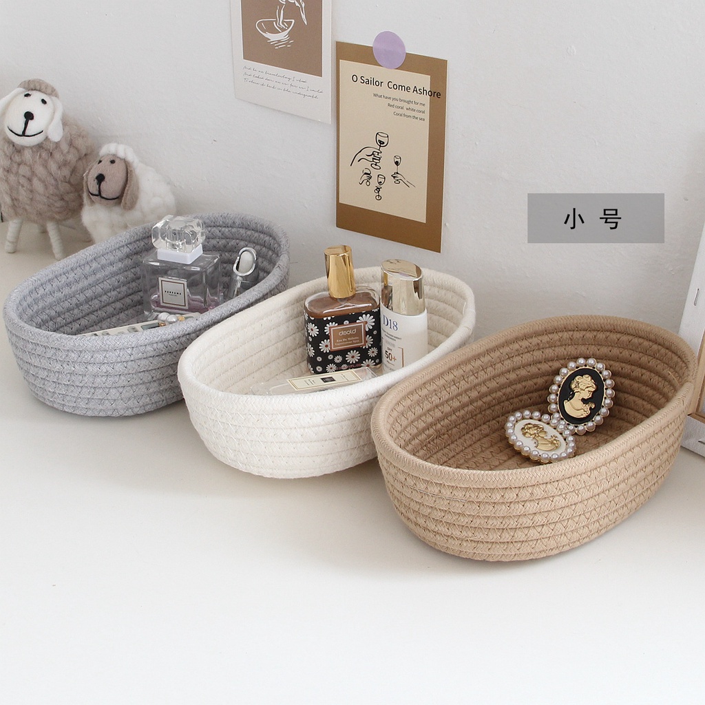 Dây Cotton dệt Bắc Âu Bàn điều khiển từ xa Lưu trữ Giỏ sắp xếp Giỏ đựng mỹ phẩm
