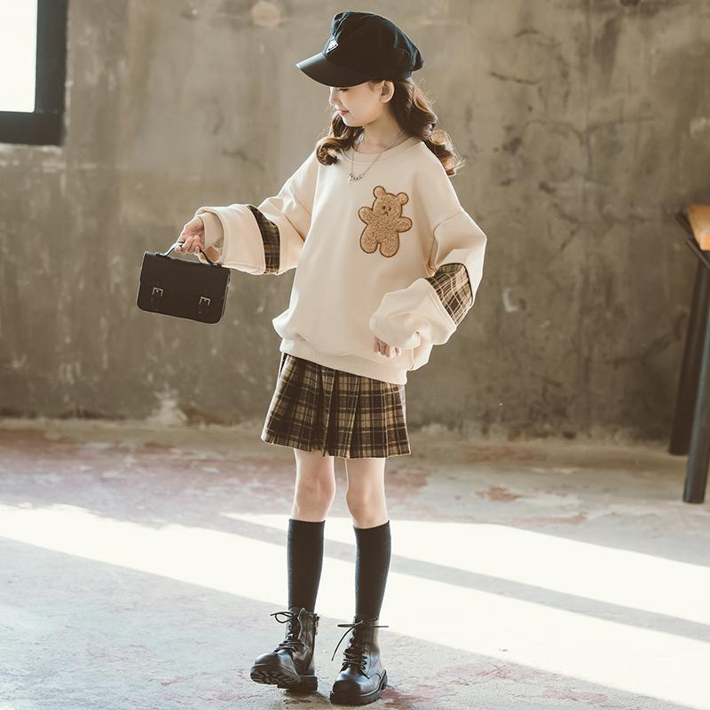 Bộ Đồng Phục Gồm Áo Len Và Chân Váy Xếp Ly Dày Dặn Thời Trang Thu Đông Cho Bé Gái 3-14 Tuổi