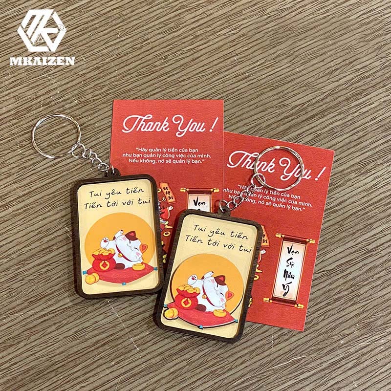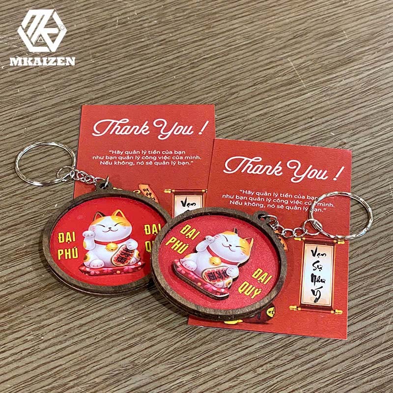 Móc khóa handmade/ Móc khóa gỗ may mắn/ Móc khóa gỗ thần tài / Móc khóa gỗ handmade -MKAIZEN