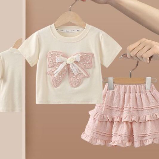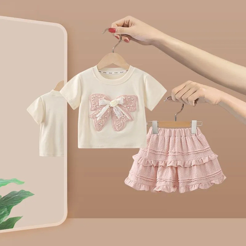 Bộ Đồ Bé Gái Mùa Hè 2025 Phong Cách Mới Thời Trang Cho Bé Mùa Hè Trẻ Em Áo Thun Tay Ngắn Bộ Đồ Hai Mảnh Vừa Lớn Trẻ Em ins