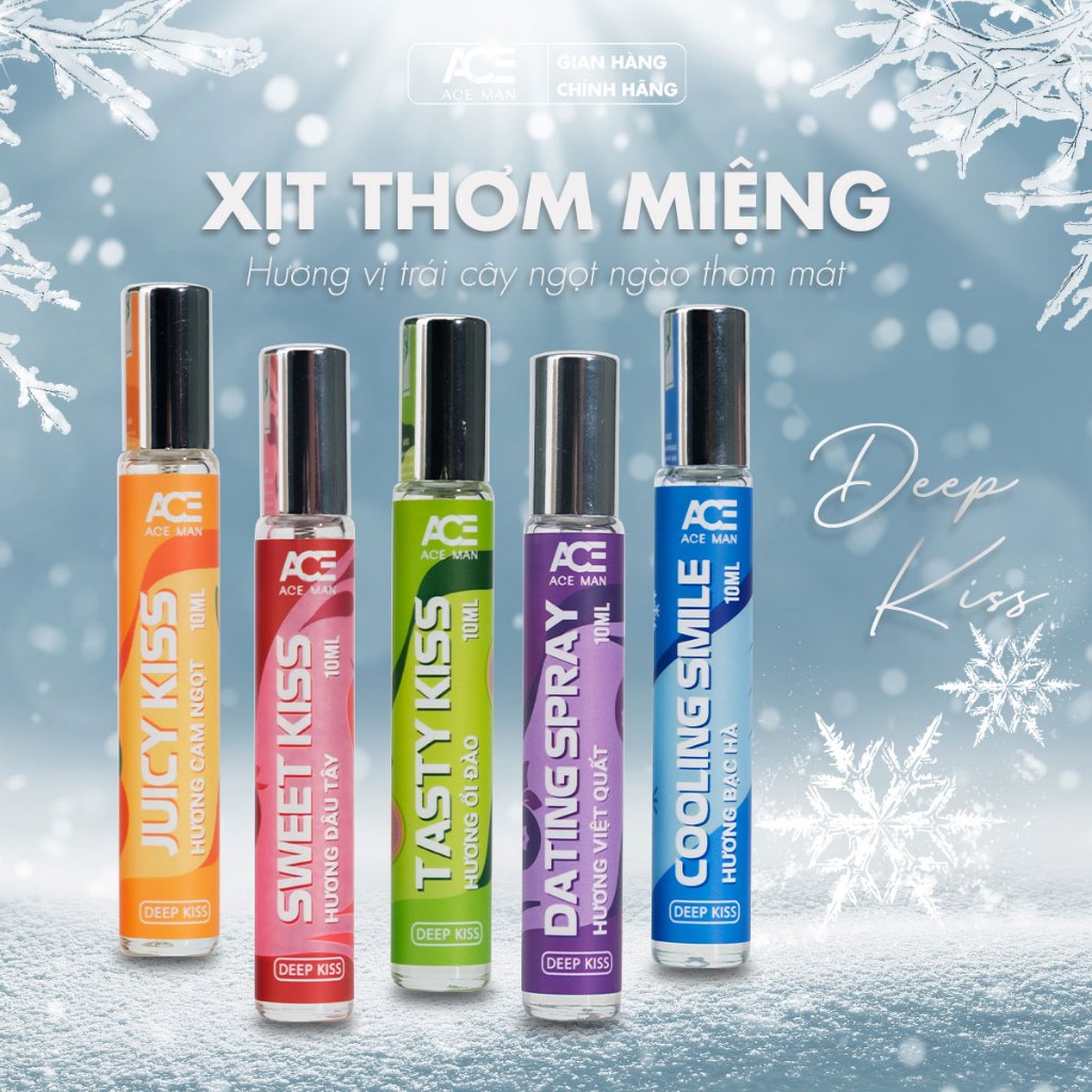 Chai xịt thơm miệng ACE vị trái cây Deep Kiss 10ml Nam Nữ hương ngọt ngào cho hơi thở thơm mát