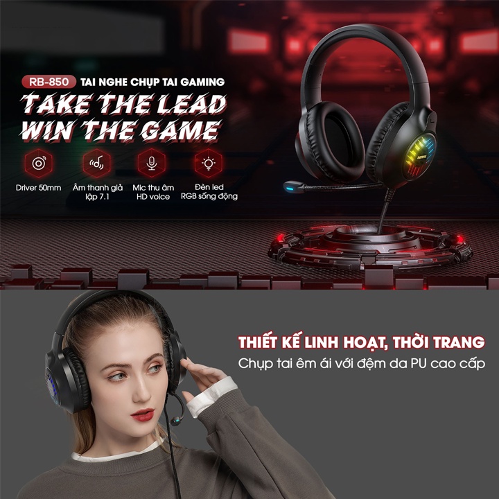 Tai nghe chụp tai game thủ Remax WarGod Series II RM-850 tích hợp LED RGB Jack 3.5mm