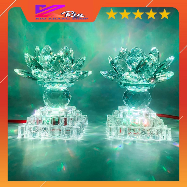 [Giá 1 cặp] Đèn thờ hoa sen pha lê cao cấp thờ tượng phật, thờ quan âm, trang trí tủ thờ, đồ thờ