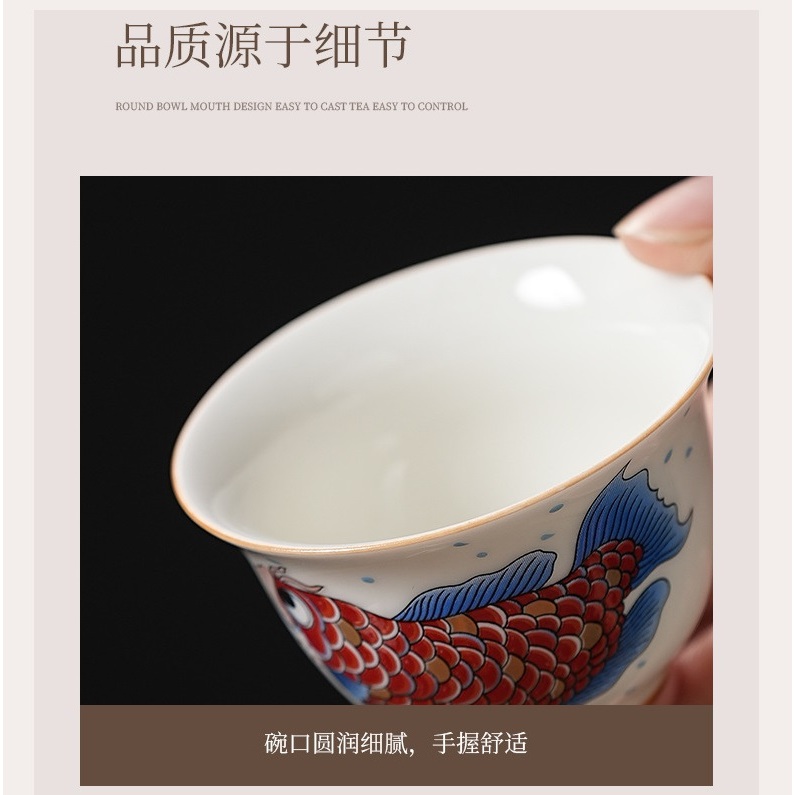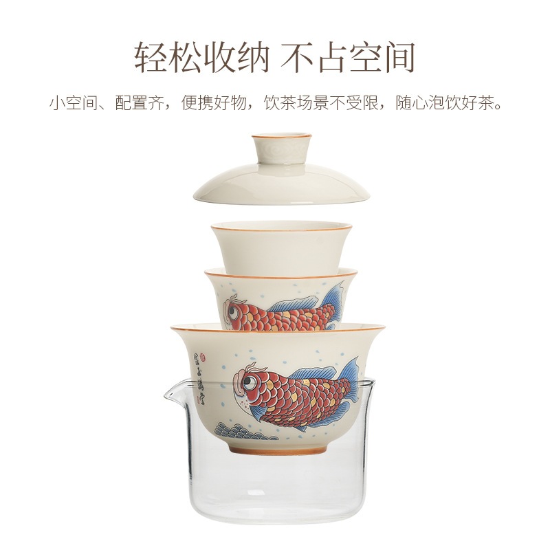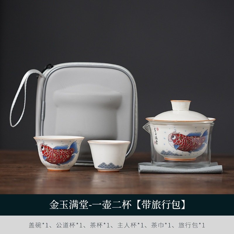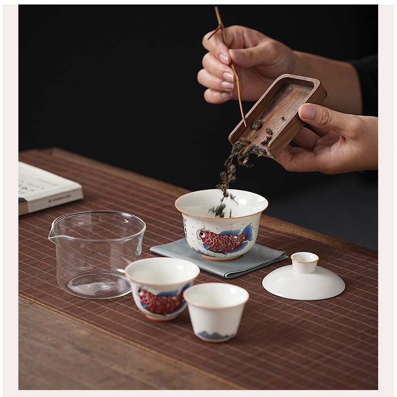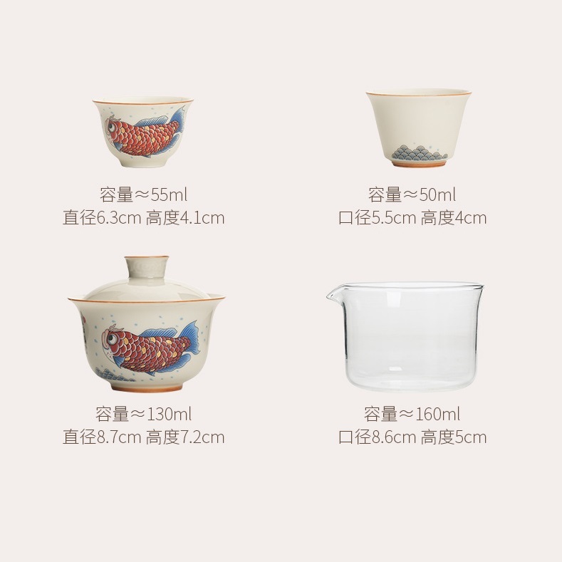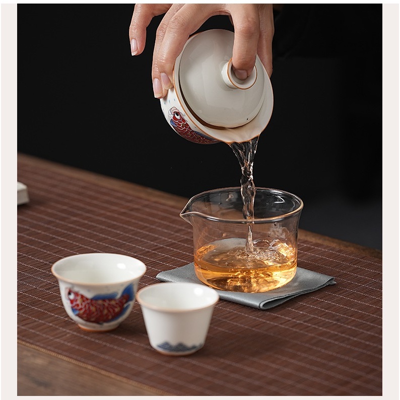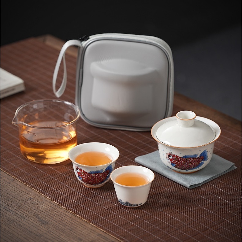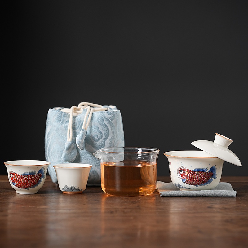 Bộ Ấm Chén Sứ Pha Trà Họa Tiết Long Ngư Kèm Túi Chống Va Đập