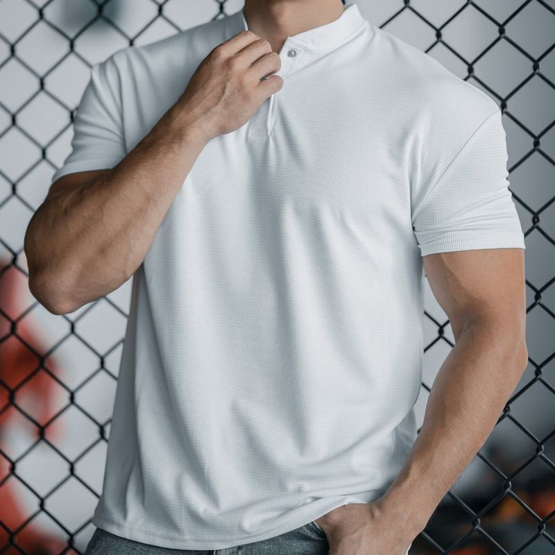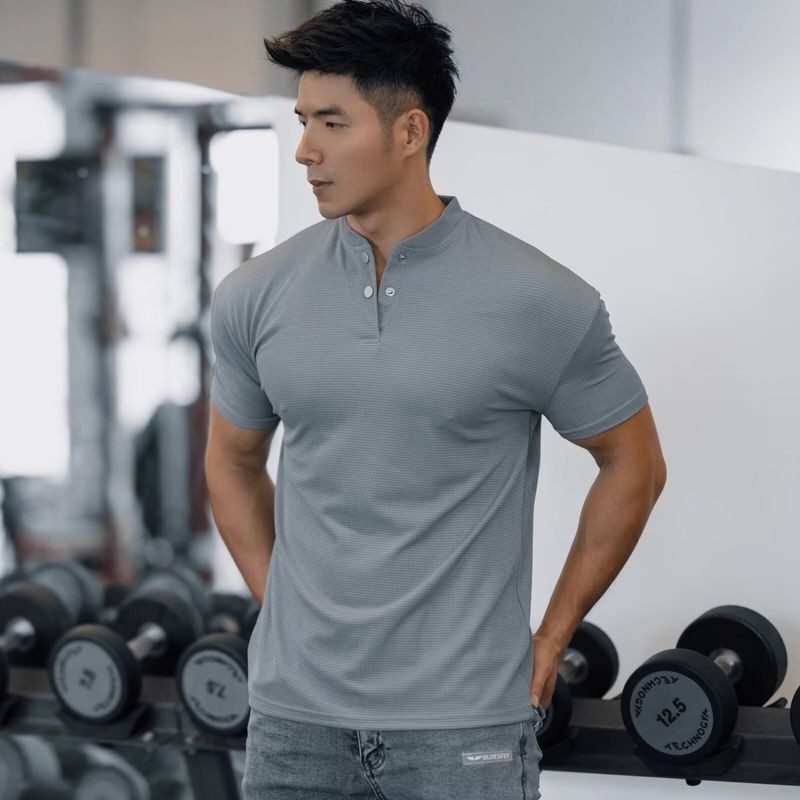 Áo sơ mi Polo thể hình cổ Henley khô nhanh thoáng khí mùa hè dành cho nam