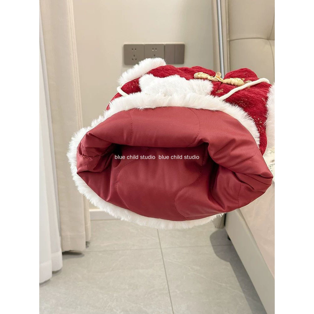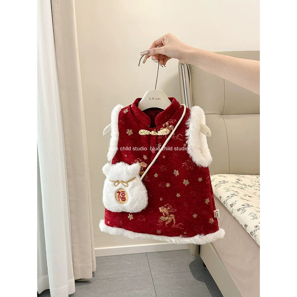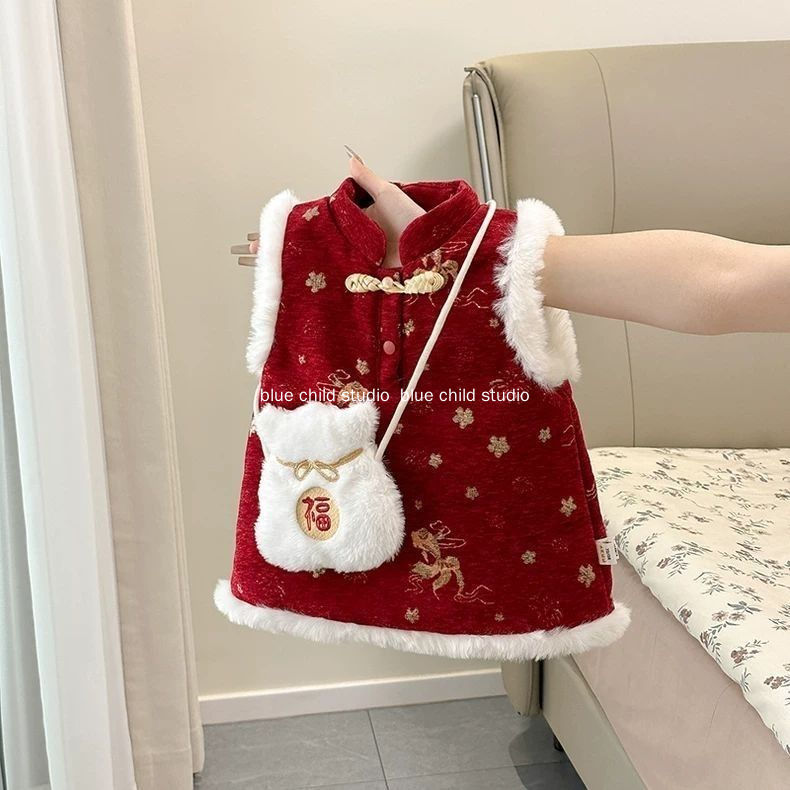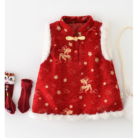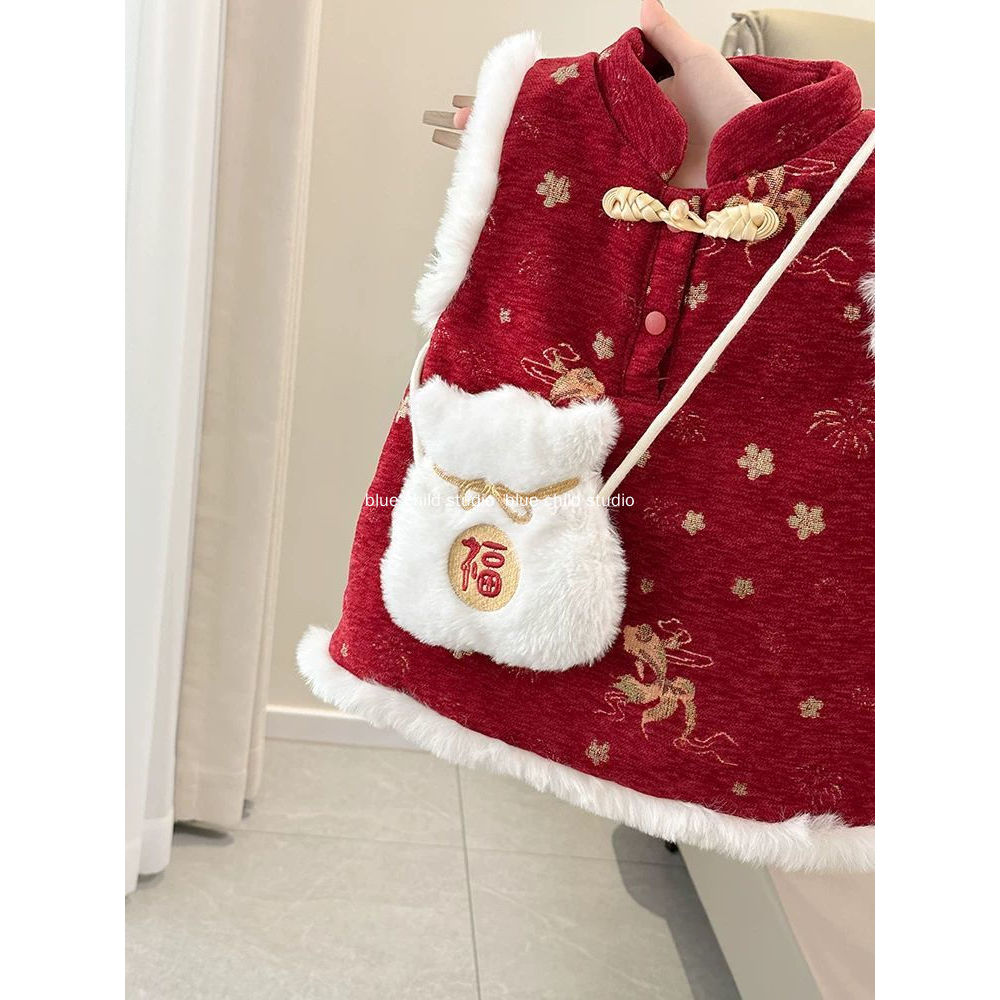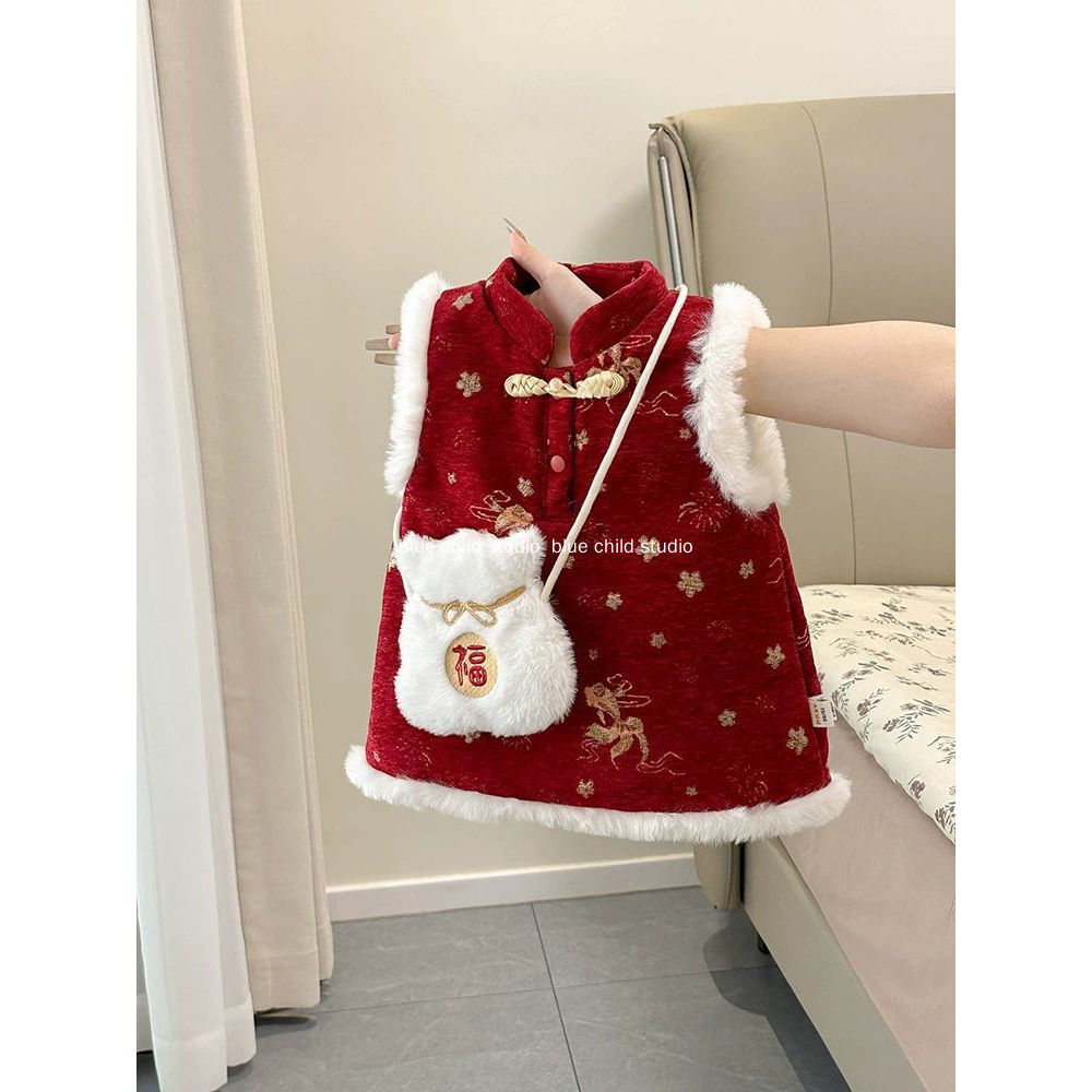 Váy dày cho bé gái 2026 Váy năm mới ~ Váy một tuổi lễ hội màu đỏ phong cách Trung Quốc