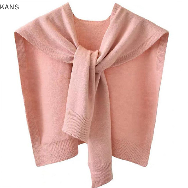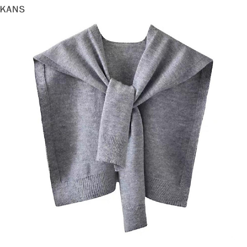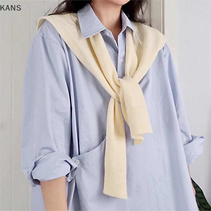 Khăn choàng dệt kim thời trang Kans dành cho nữ màu trơn đeo vai mỏng Cardigan Tie Scarf vn