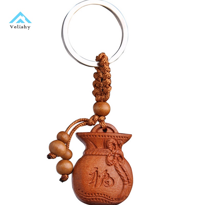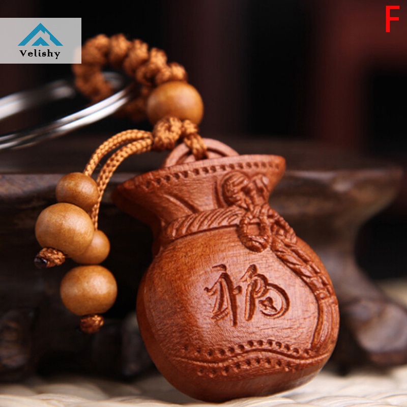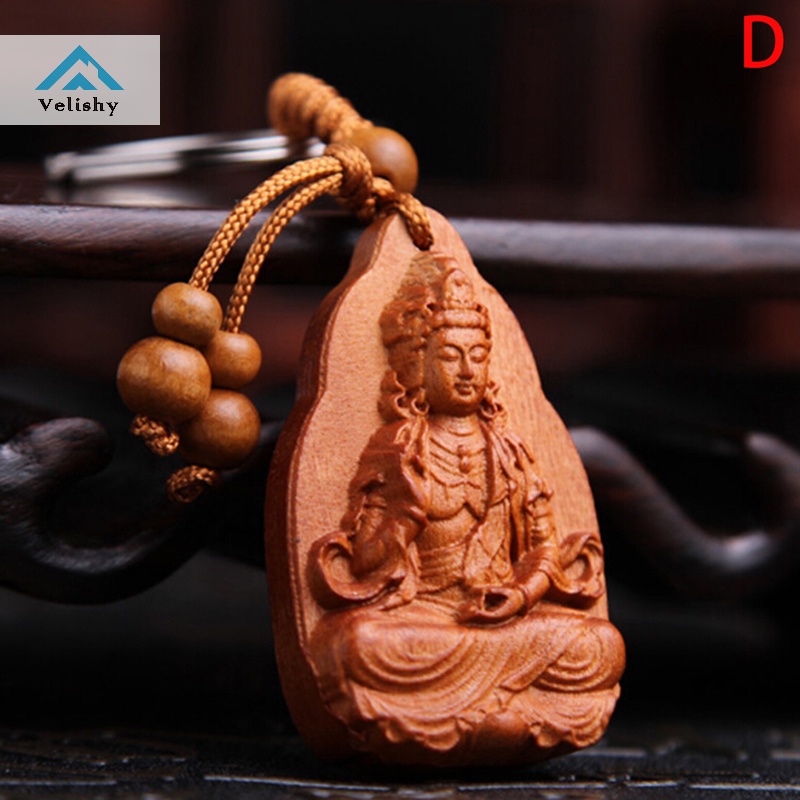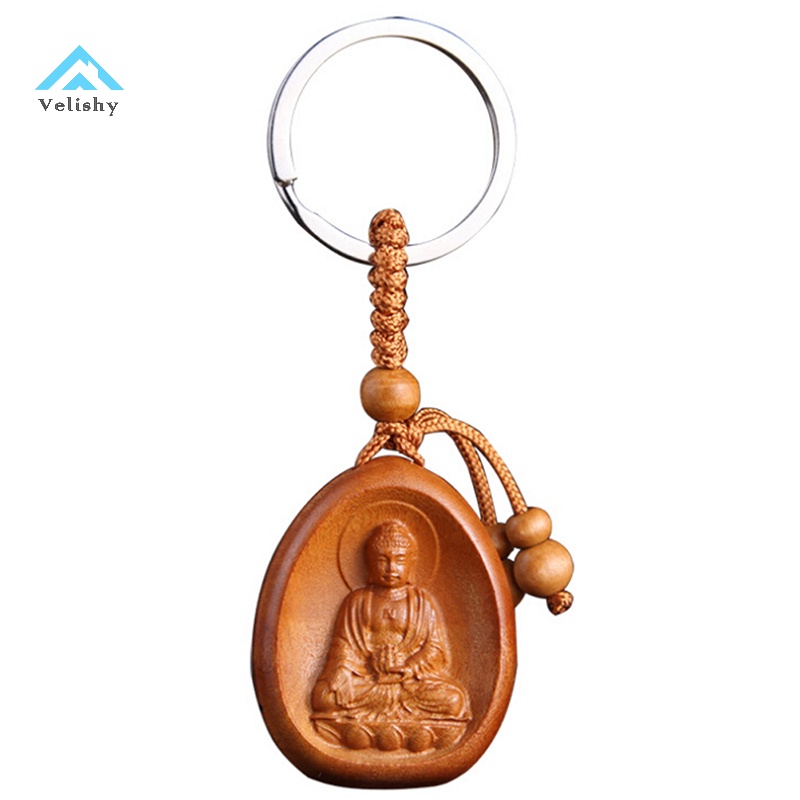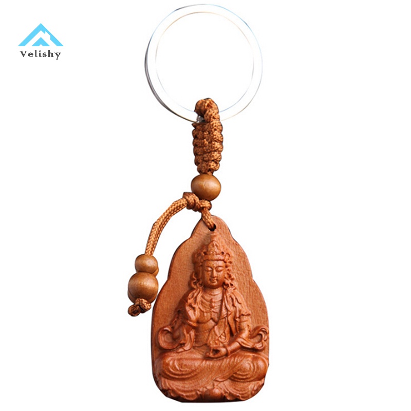 Móc Khóa May Mắn Khắc Hình Phật Bằng Gỗ