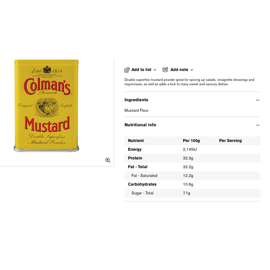 BỘT / SỐT MÙ TẠT VÀNG Colman's Original English Mustard Powder, 57g - 170g