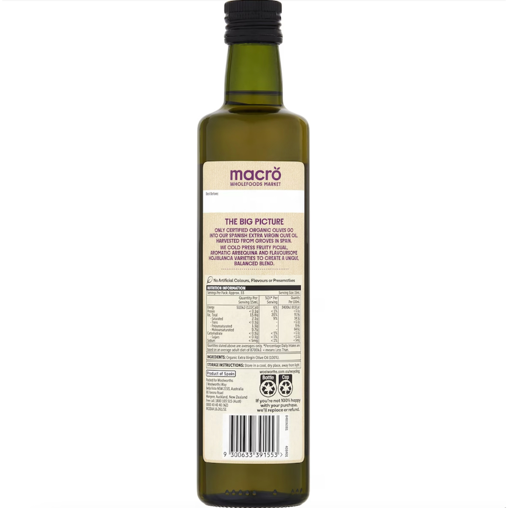 DẦU OLIVE NGUYÊN CHẤT - HỮU CƠ ÉP LẠNH Macro Organic Spanish / Allegro Extra Virgin Olive Oil, 500ml