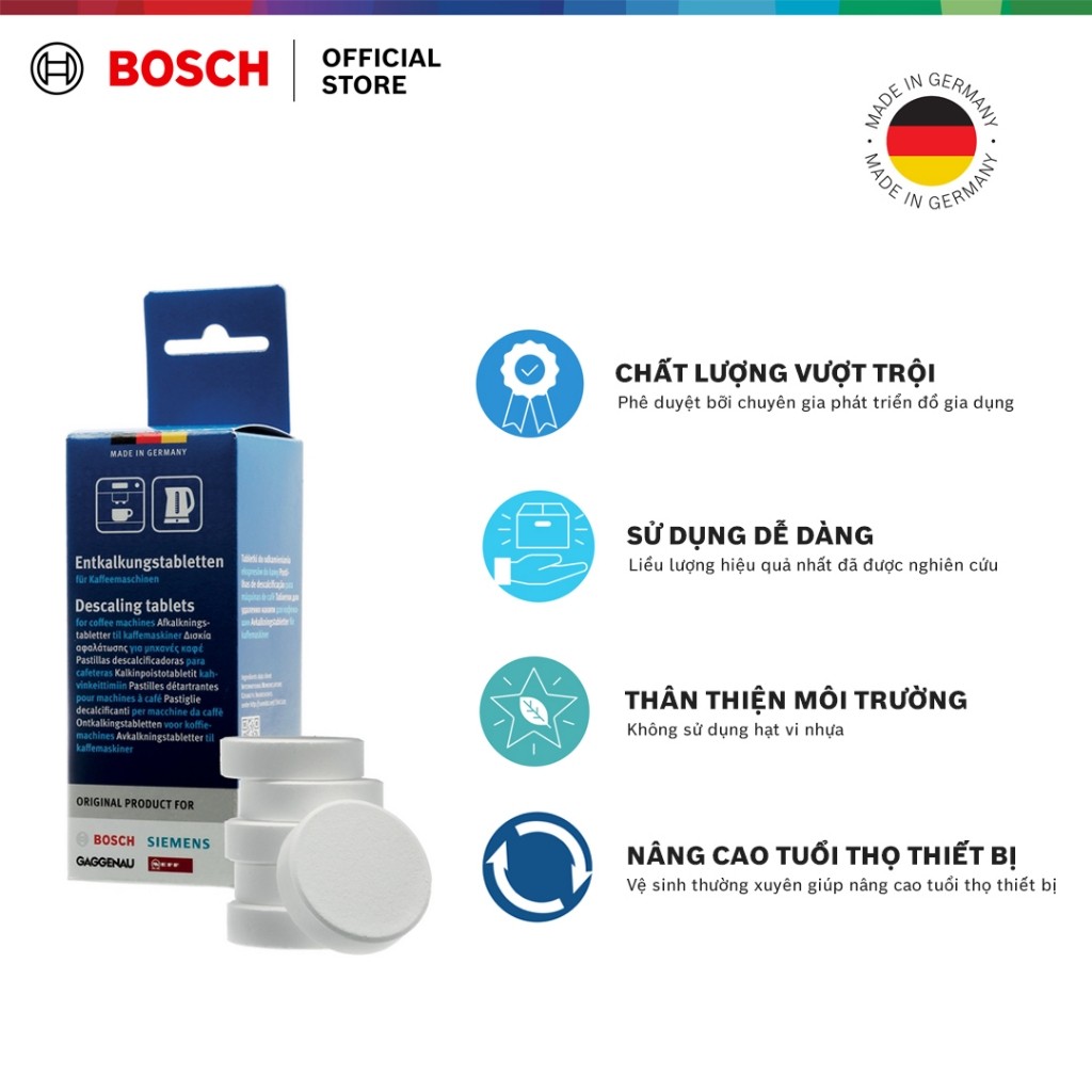 Viên tẩy cặn vôi định kỳ máy pha cà phê tự động Bosch 6 viên/hộp 00312453 - Tẩy cặn vôi nhanh chóng