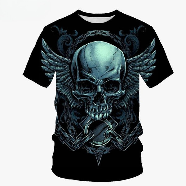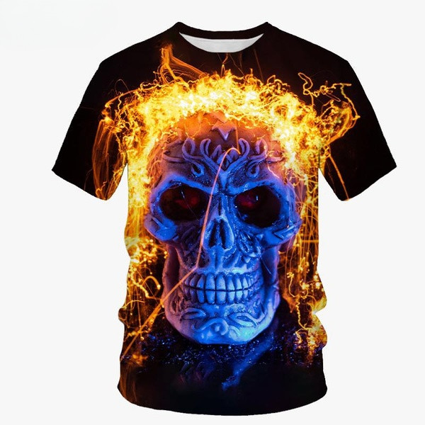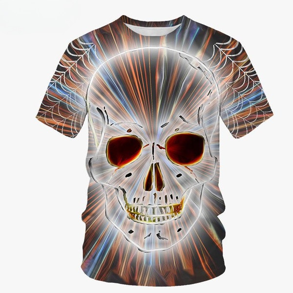 Mùa Hè Của Người Đàn Ông Thời Trang Hộp Sọ In 3DT Áo Sơ Mi Ngắn Tay Áo Vòng Cổ Hàng Đầu Lỏng Lẻo Cộng Với Kích Thước