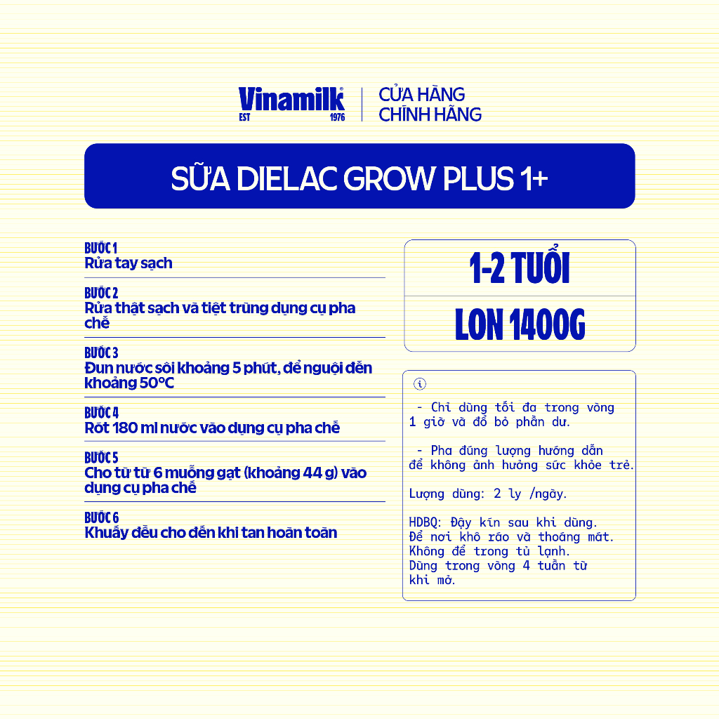 Sữa Non Vinamilk Dielac Grow Plus 1+ HT 1400g (Sữa bột cho trẻ từ 1 - 2 tuổi)