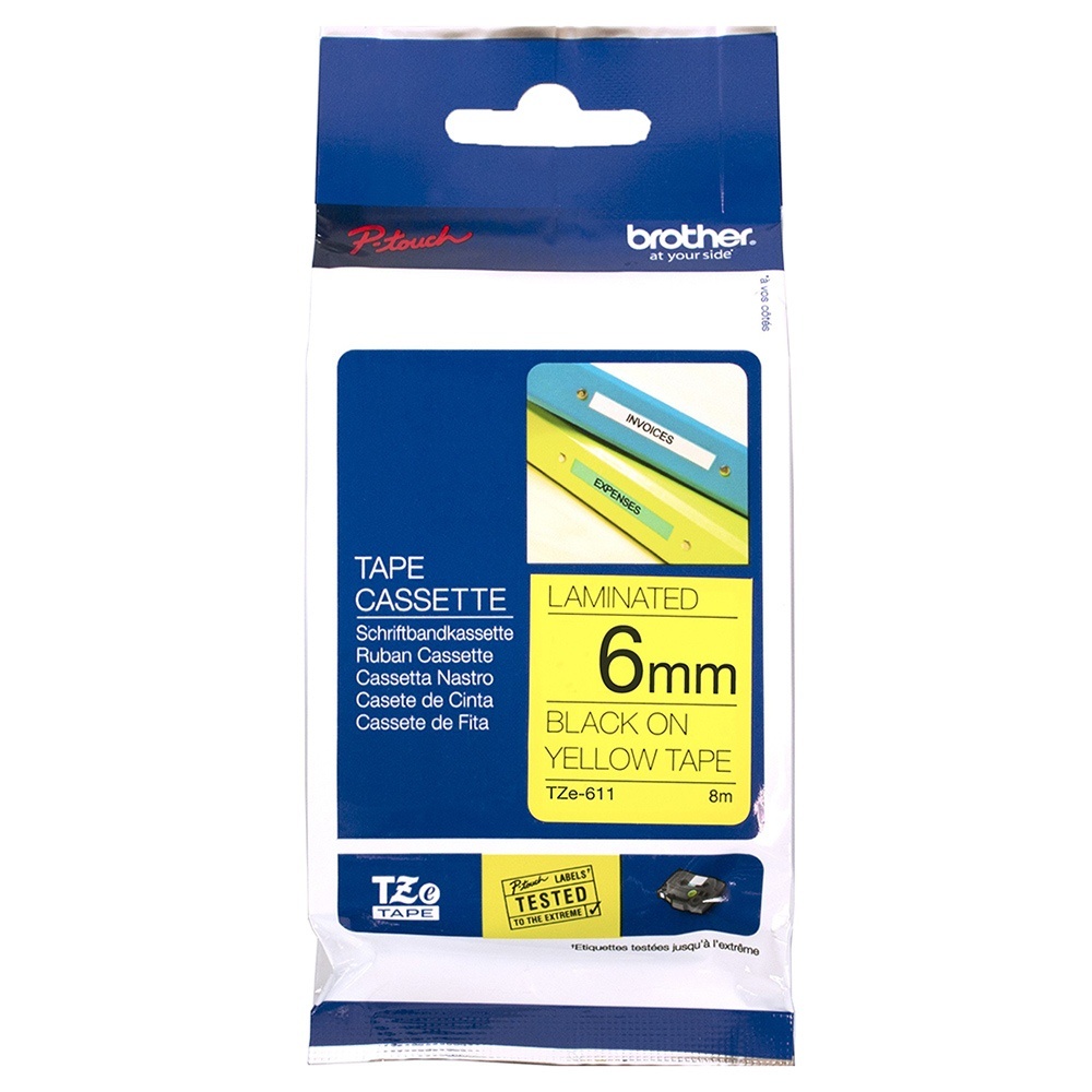 Nhãn In Brother TZe-611 Chữ Đen Trên Nền Vàng (Black on Yellow) rộng 6 mm, chiều dài 8m - Hàng Brother Việt Nam
