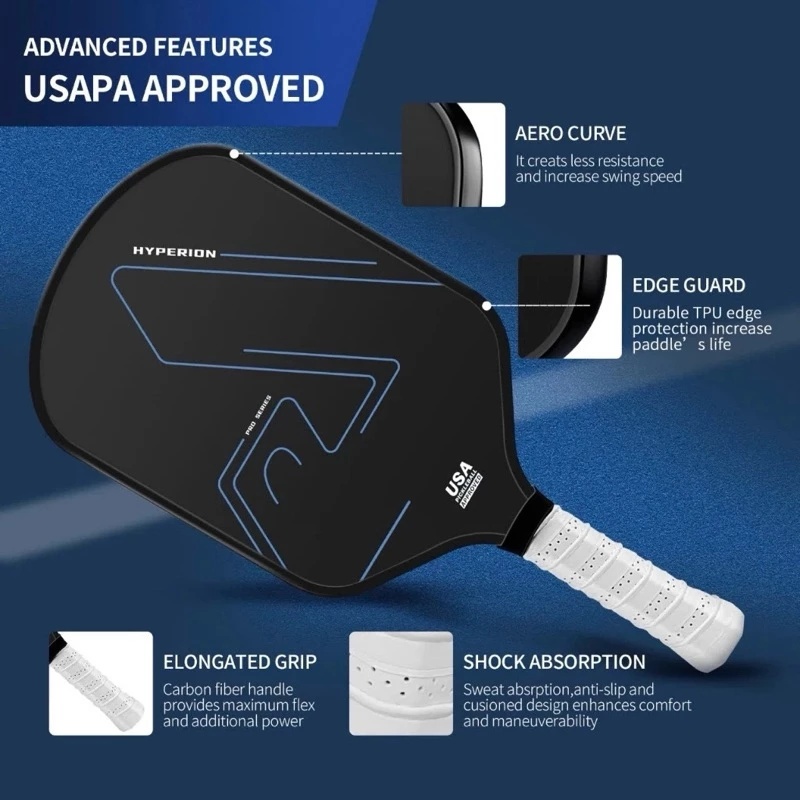 Vợt Pickleball T700 Hyperion Pro Series Sợi Carbon Mặt Nhám Dày 16mm Phù Hợp Cho Cả Người Mới Tiêu Chuẩn USAPA Cao Cấp