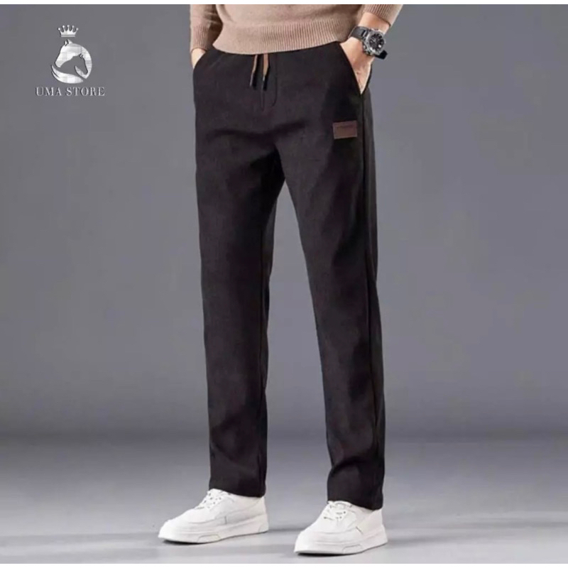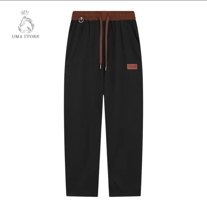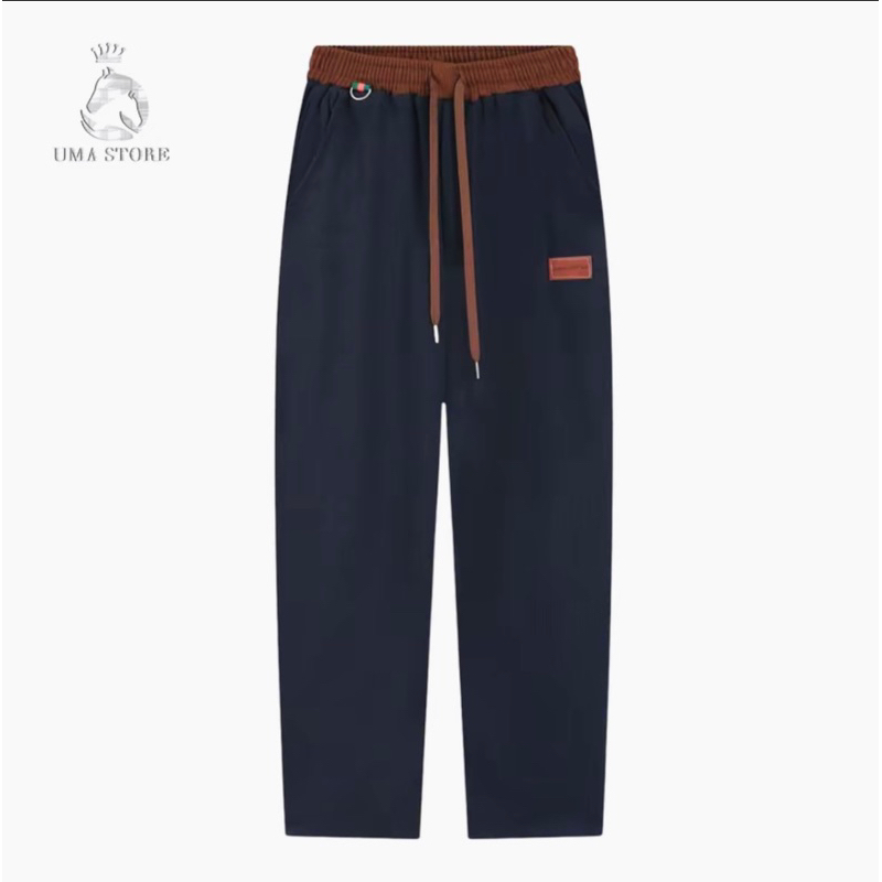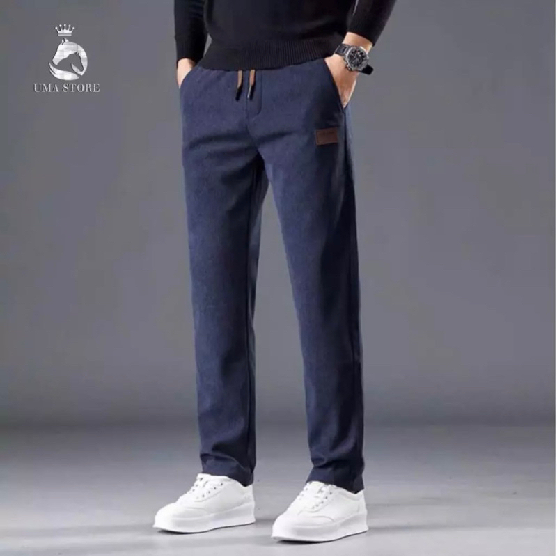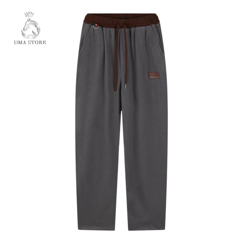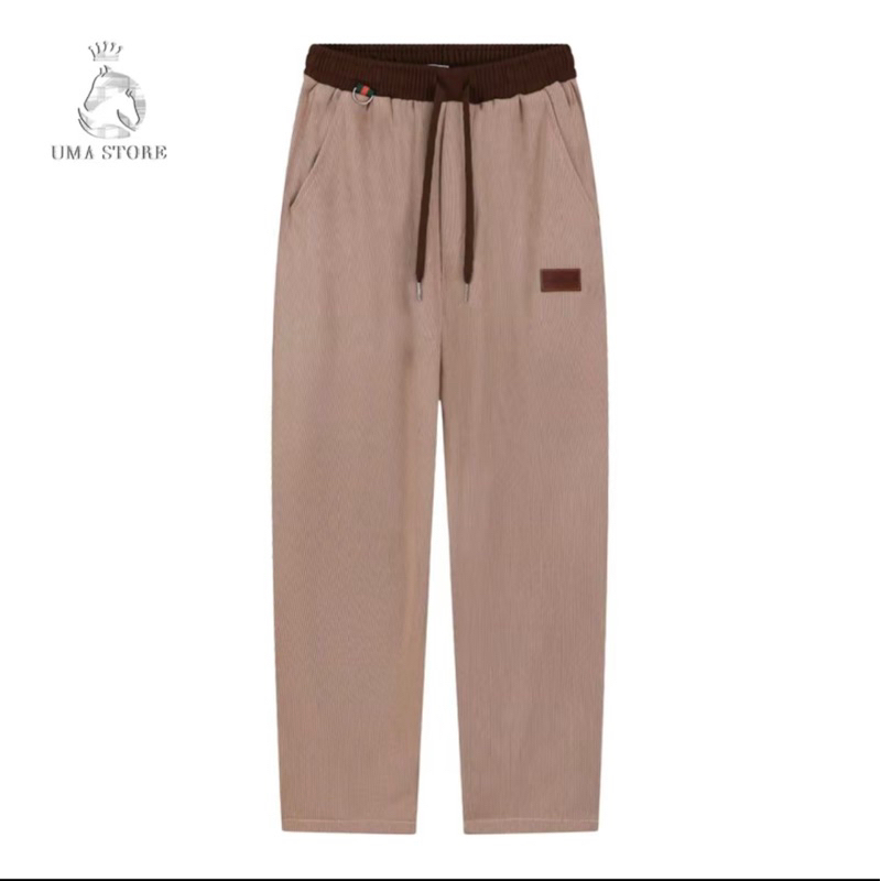 Quần Nỉ Dài Nam Mác Da Cạp Nâu UMA - Quần Nam Ống Suông chất nhung tăm dày dặn, quần thể thao khoẻ khắn (UMA STORE OR)
