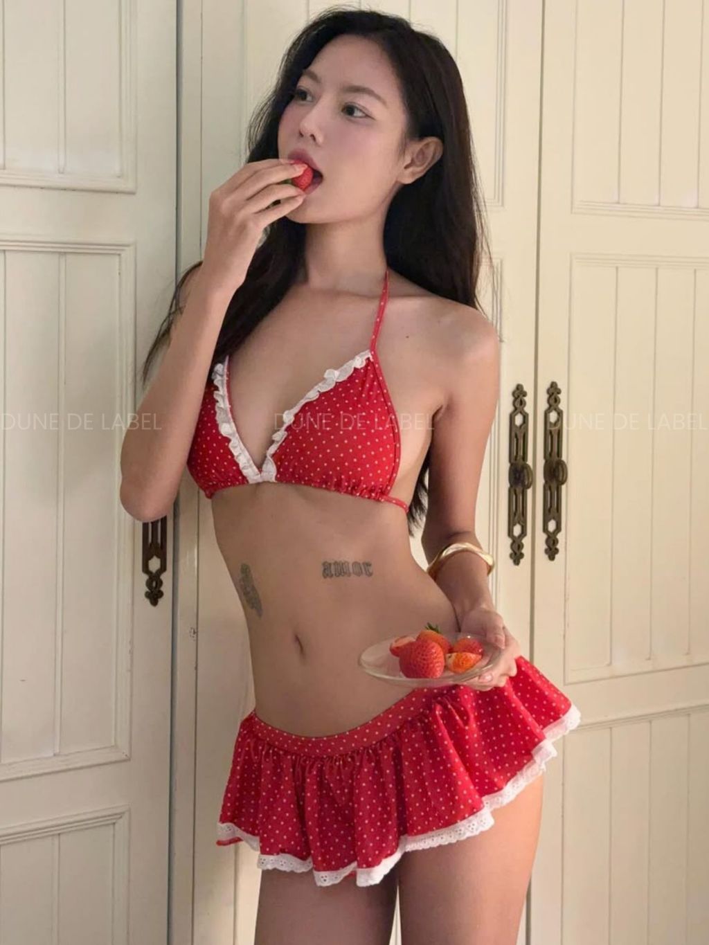 DUNE DE LABEL l Bikini 2 Mảnh Chấm Bi Đỏ Thiết Kế Viền Ren l DOTS BIKINI
