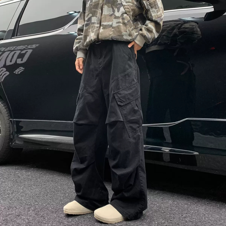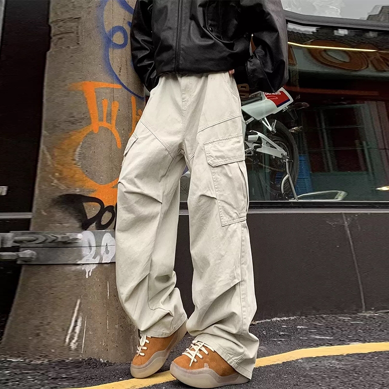 HEINS quần cargo baggy nam nữ ống rộng quần túi hộp vải dù có dây rút unisex quần bò cao cấp phong cách hiphop Đường phố Đen, nâu, trắng