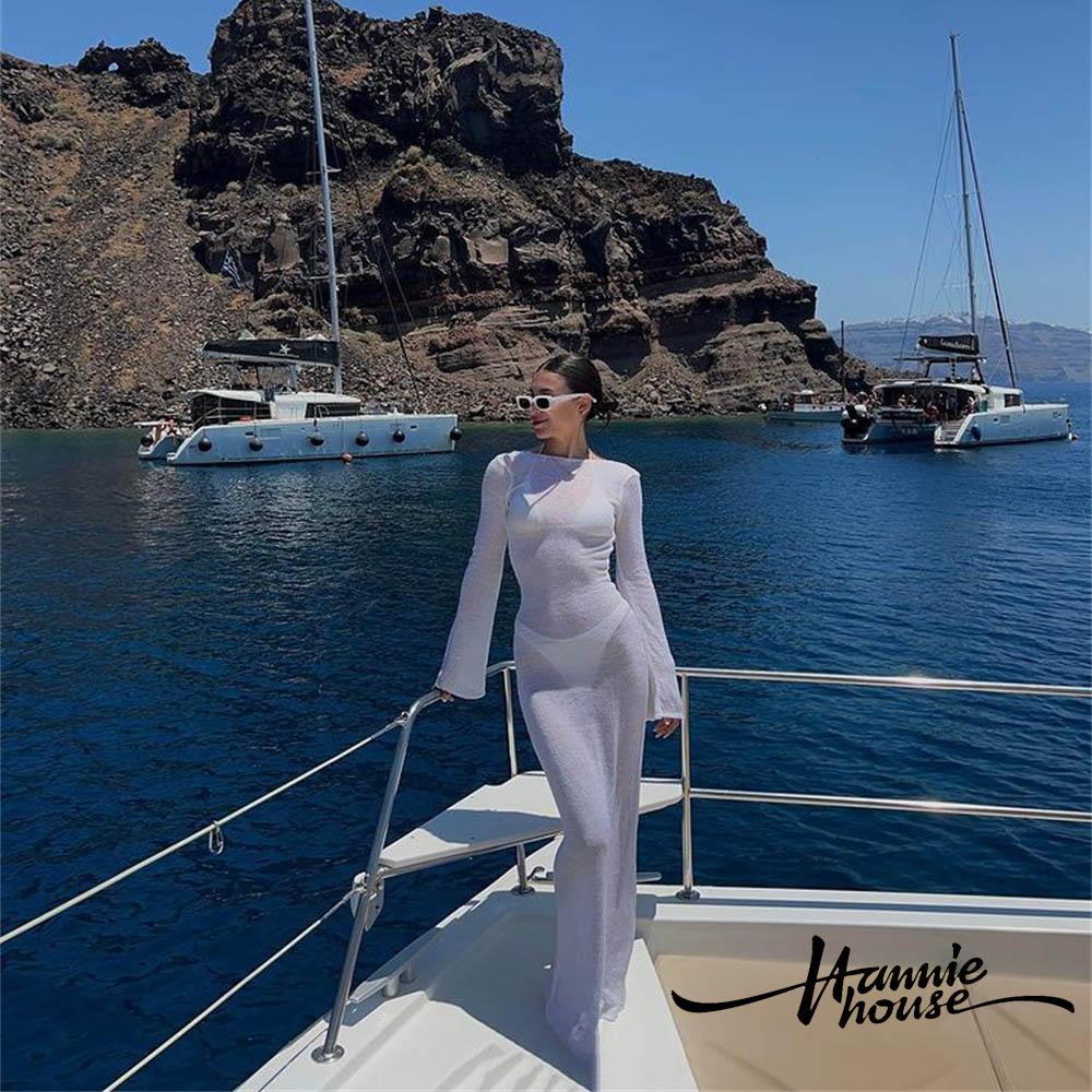 Hannie-đầm Bơi Dài Tay Hở Lưng Màu Trơn Dành Cho Nữ