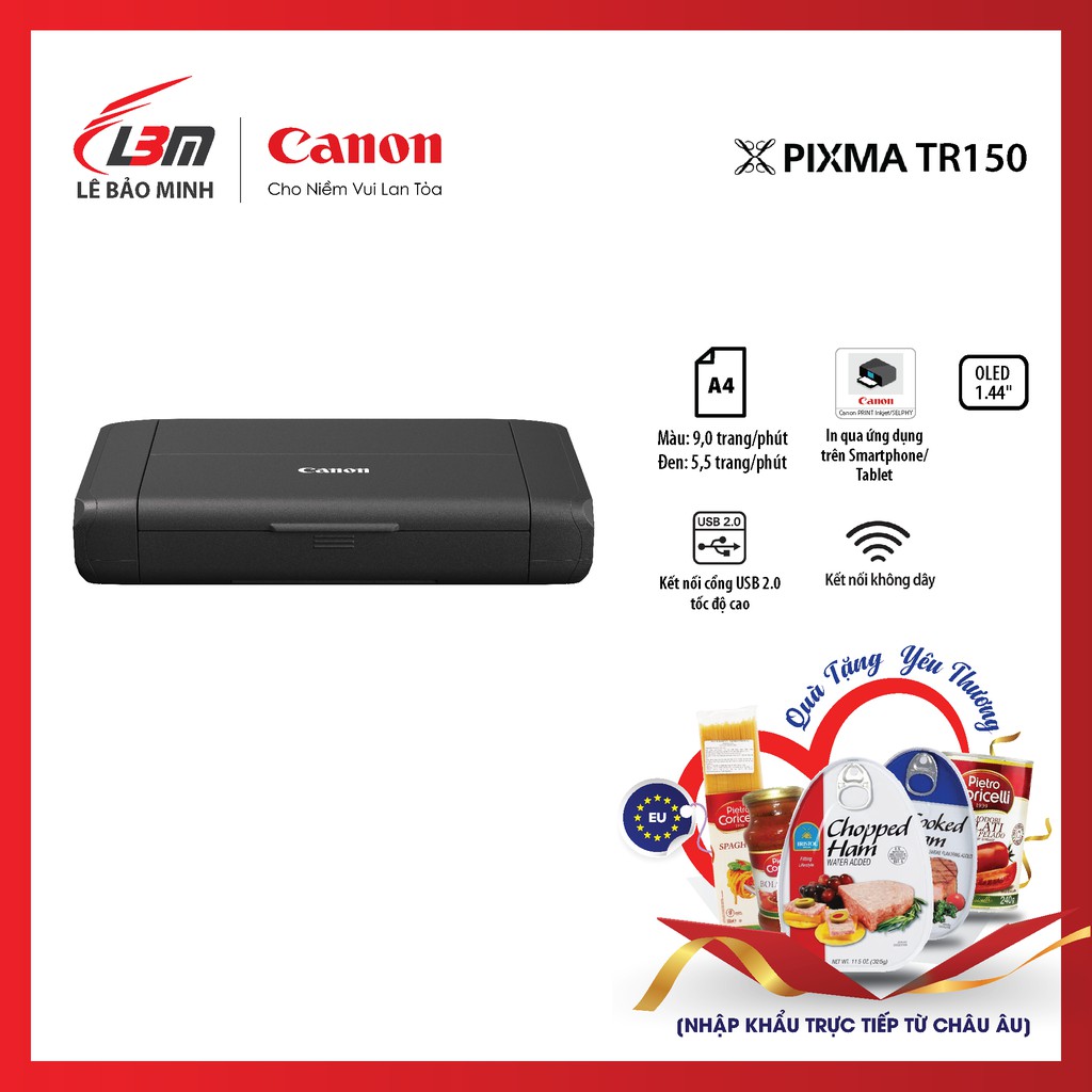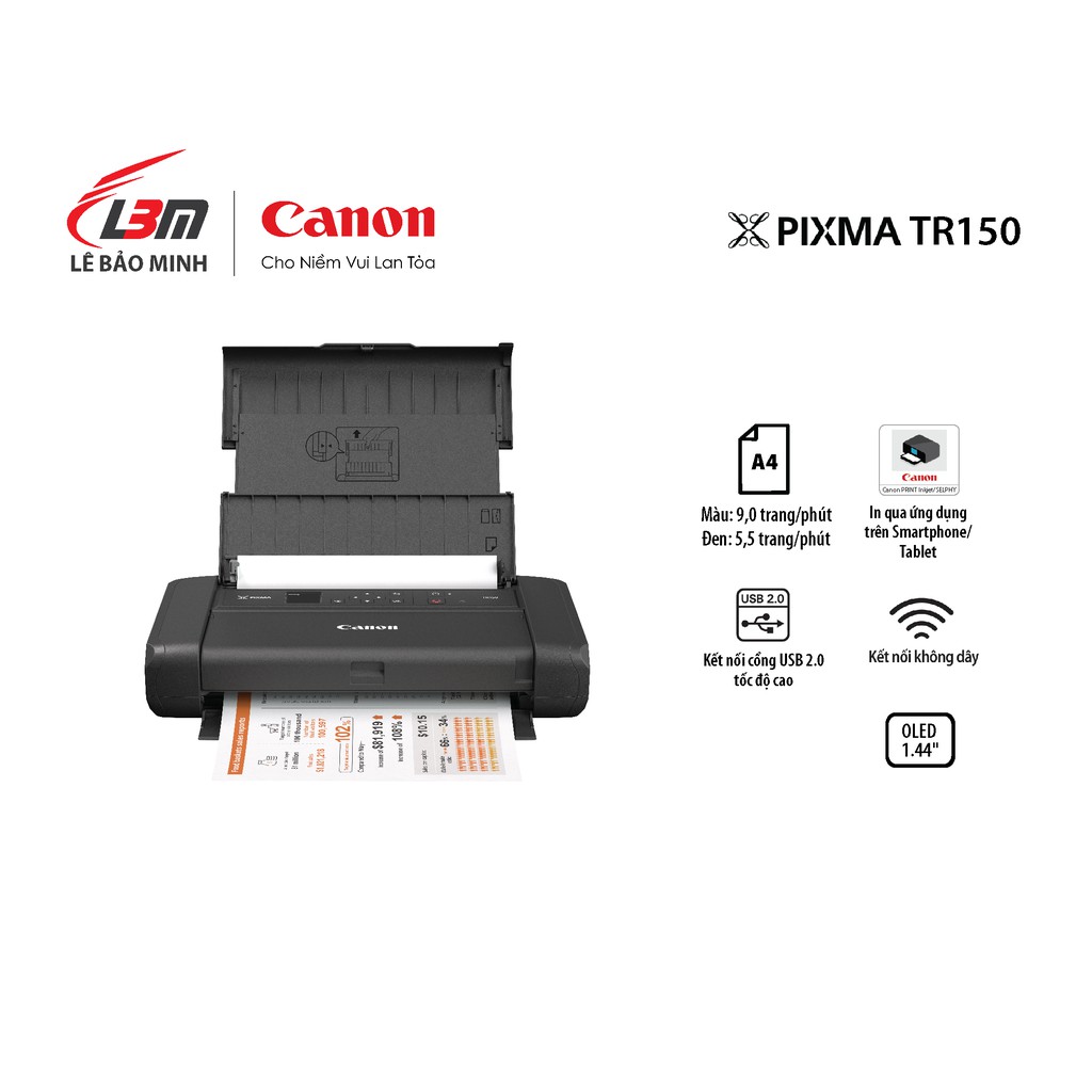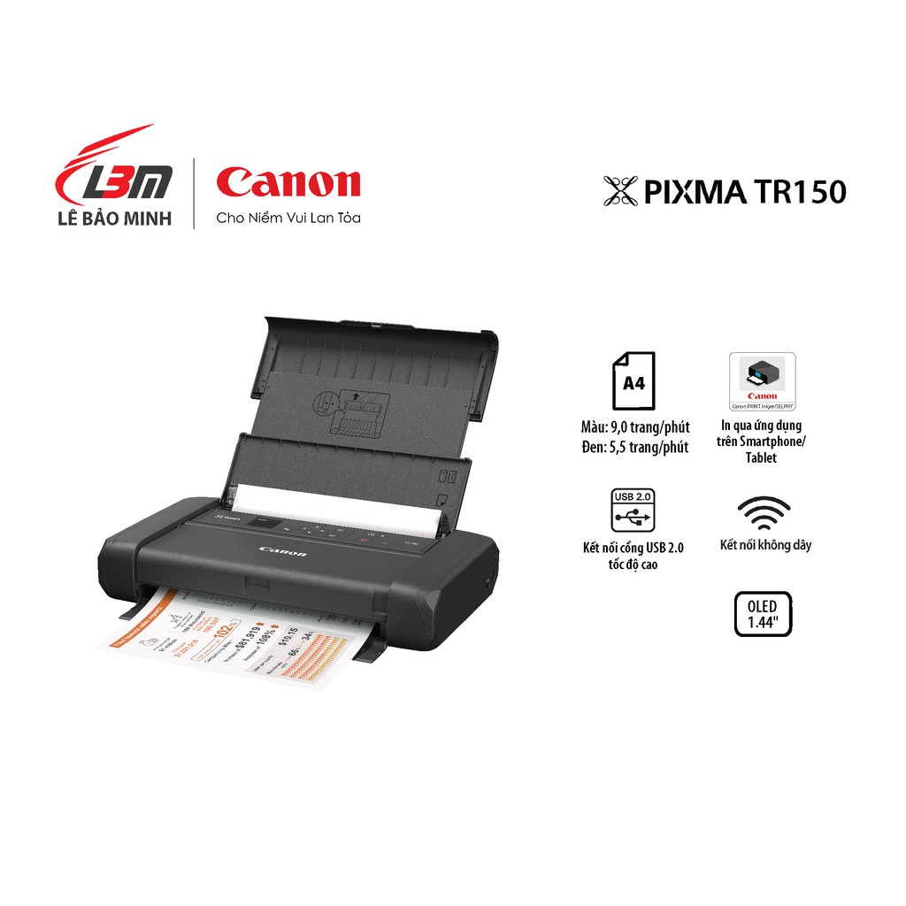 Máy in phun đơn năng di động Canon TR150 kèm pi - chính hãng