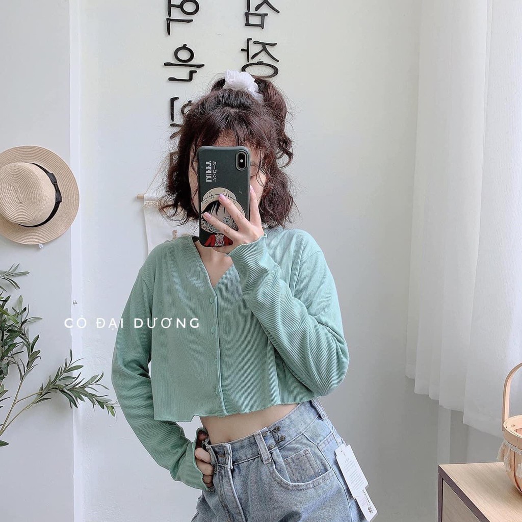 Áo Croptop Cardigan Dài Tay Nữ 🌸 Phông thun tăm cúc ngực dáng ngắn ôm body ulzzang màu ĐEN | TRẮNG | TÍM | XANH HOT 🌸