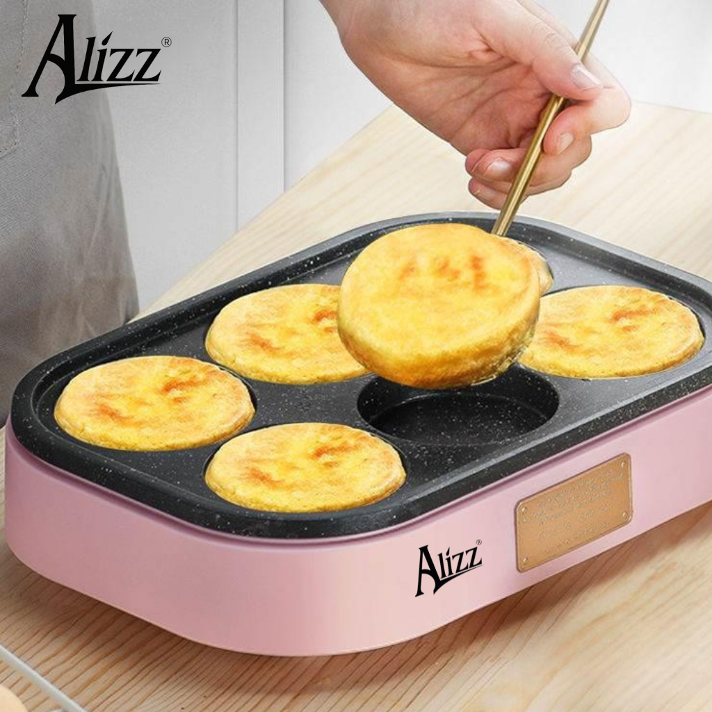 Chảo Chiên Trứng, Làm Bánh 6 Ngăn Hãng ALIZZ, Công Suất 900w, Không Dính, Máy chiên bánh burger trứng chống dính đa năng