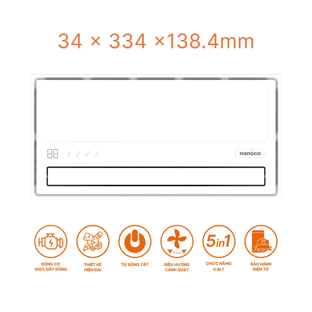 Máy hút sưởi 5in1 Nanoco Model NBD2561 có remote, lỗ khoét 305x605 mm