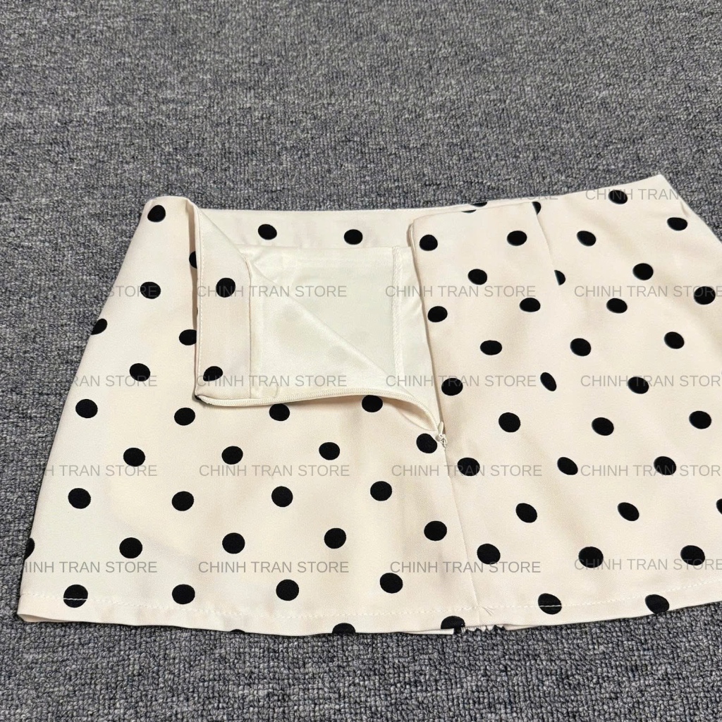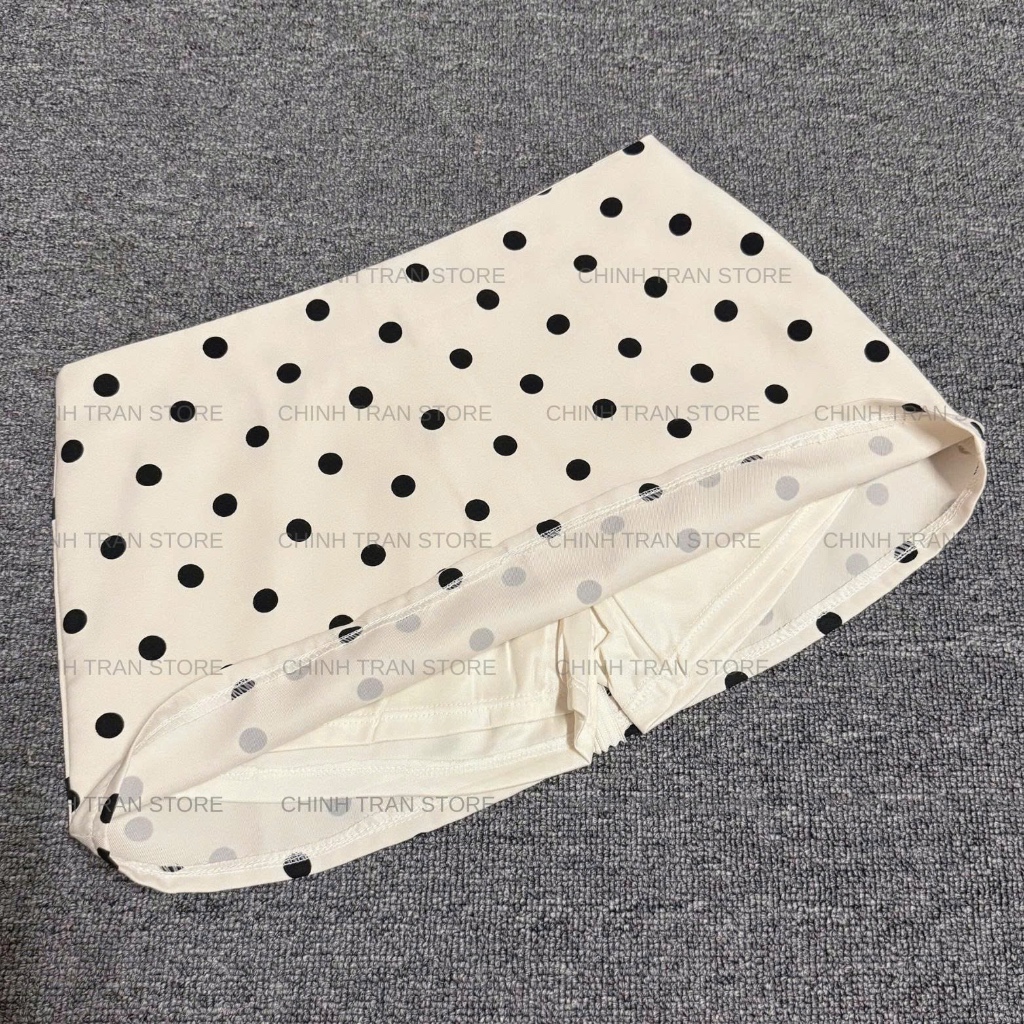 Chân Váy Cạp Trễ Chấm Bi Dáng Ngắn Phong Cách Trendy Nữ Tính - Chinh Trần Store
