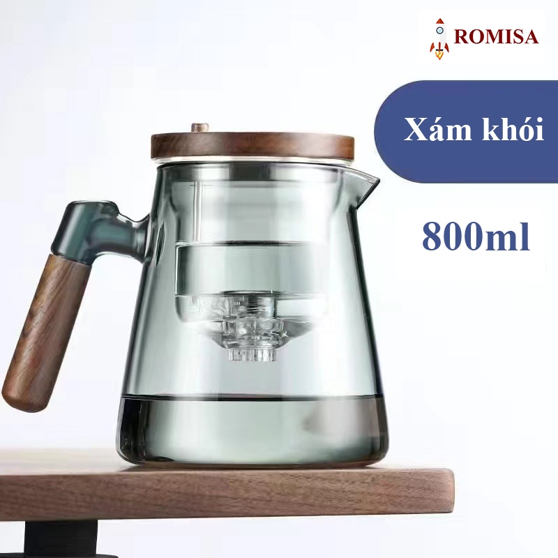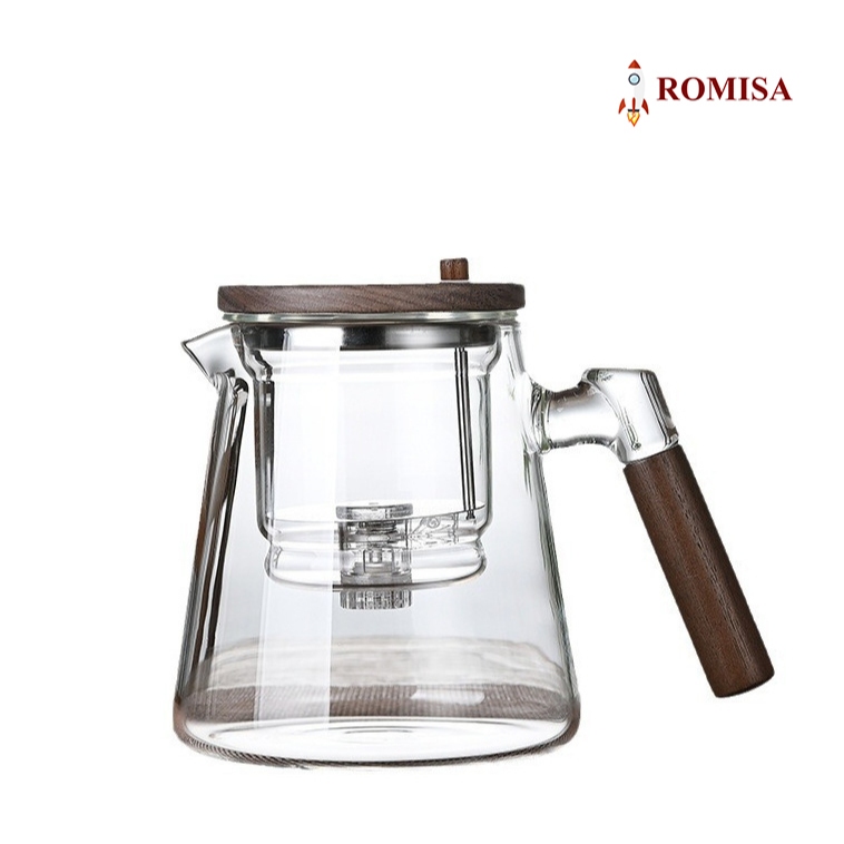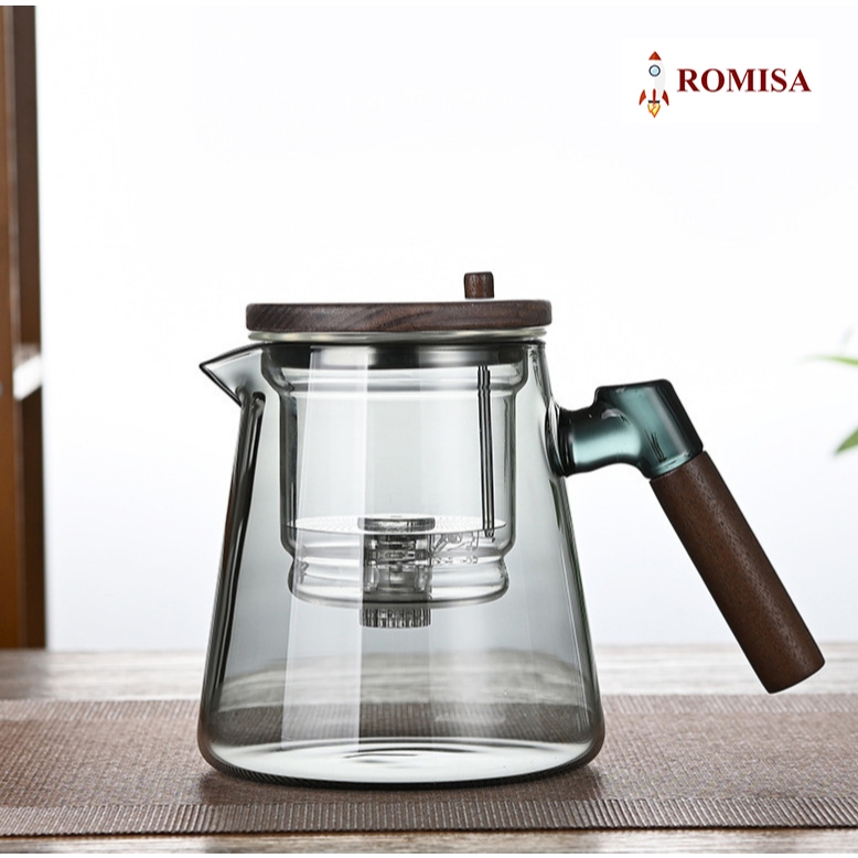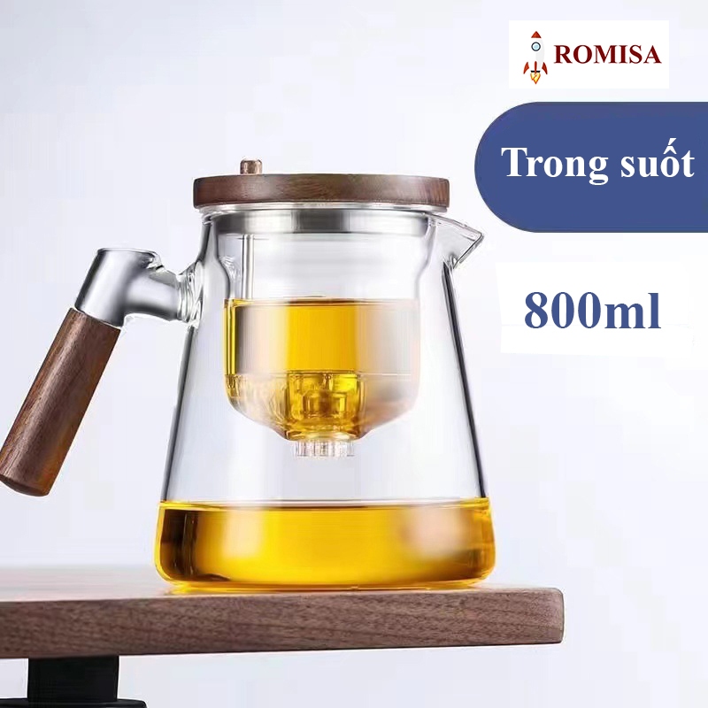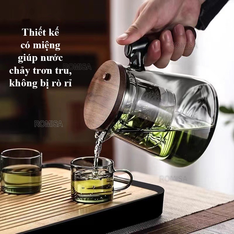 Ấm trà, Bình pha trà thủy tinh có nút ấn BT14, Cốc thủy tinh pha trà Cốc pha trà có tay cầm bằng gỗ