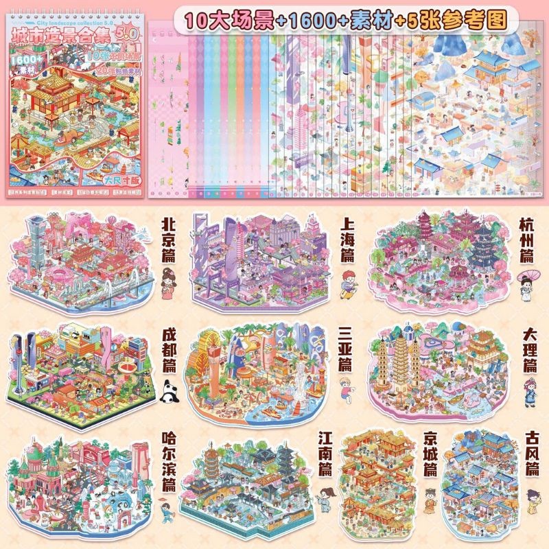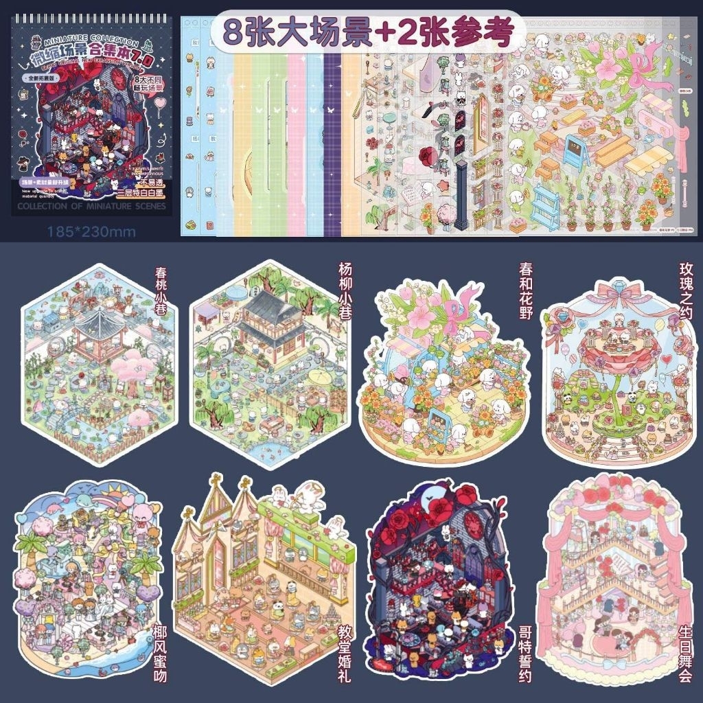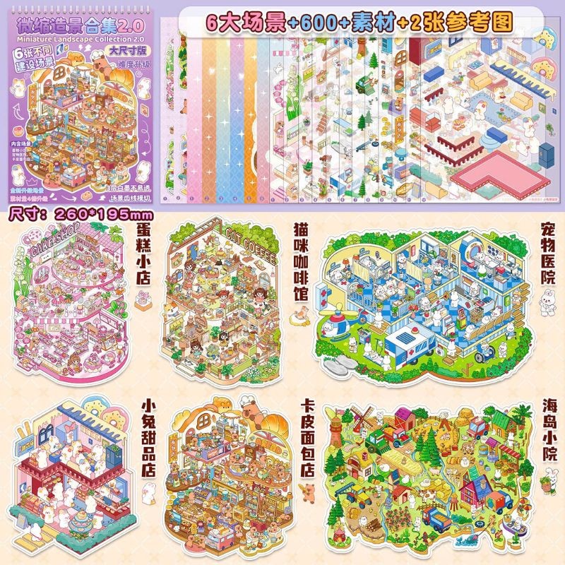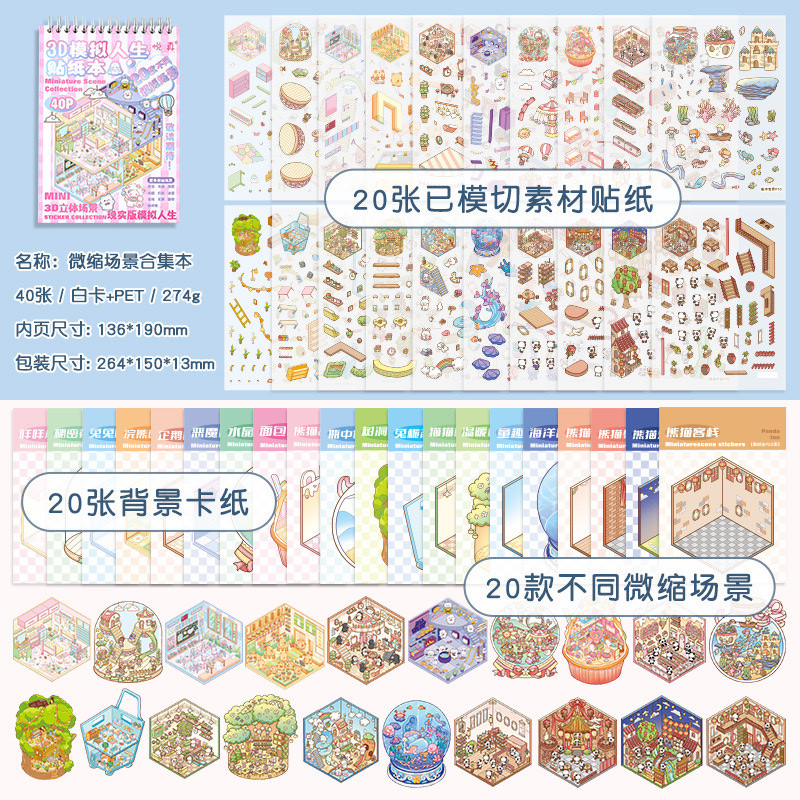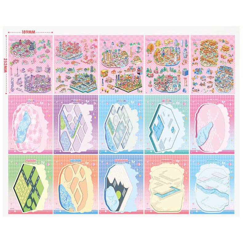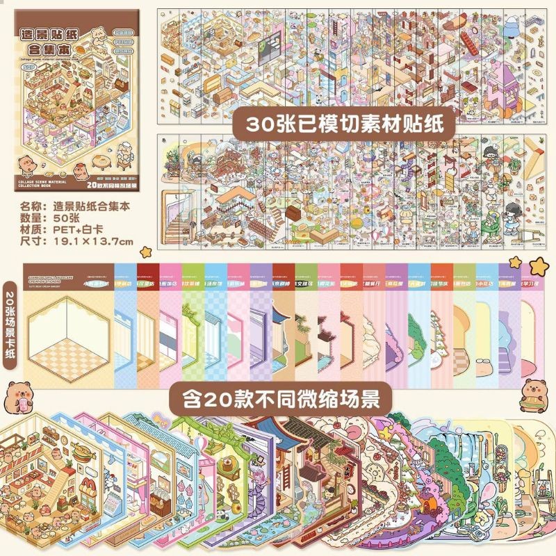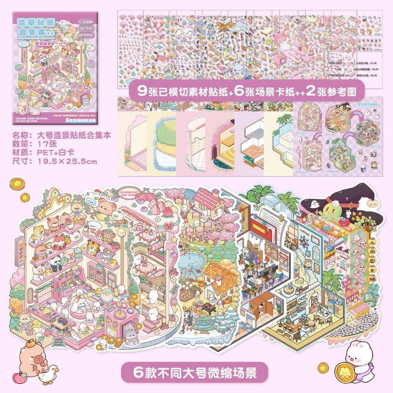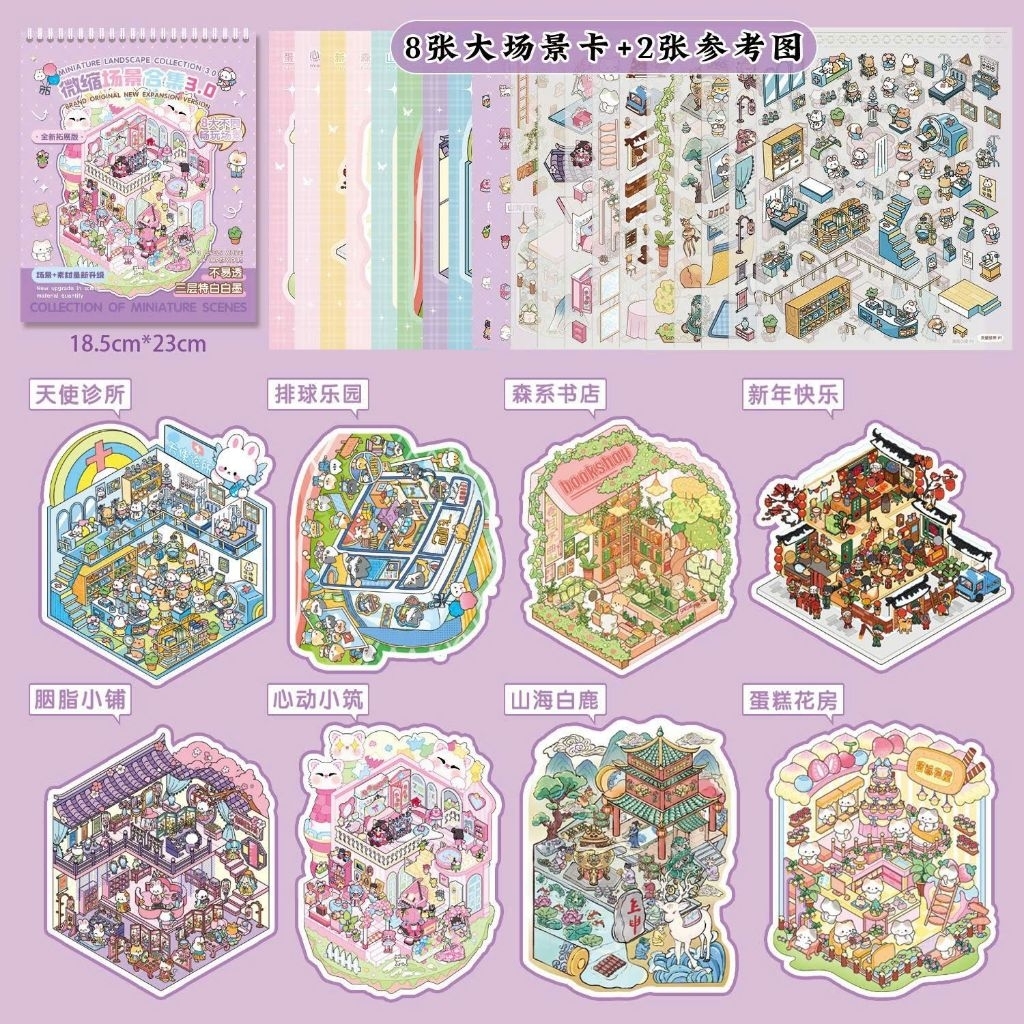 Tổng hợp SỔ Sticker 3D không gian, hình dán phong cảnh cắt sẵn cho bé - Bộ Nhãn dán cảnh quan_HANACORN