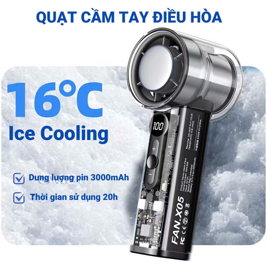 Quạt Cầm Tay Sò Lạnh X05 Làm Mát Đến 16 Độ 100 Tốc Độ Gió Giảm Ồn Dây sạc Type C Tiện Lợi