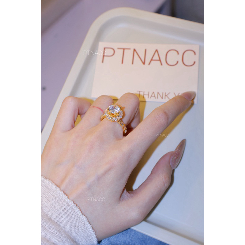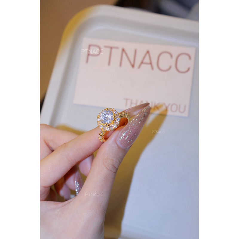 PTNACC Nhẫn đính đá hột cao đế tròn mạ vàng dành cho nữ