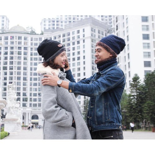 PVN2494 Bộ mũ len kèm khăn cổ Hàn Quốc nam nữ lót lông siêu ấm, siêu mốt T2