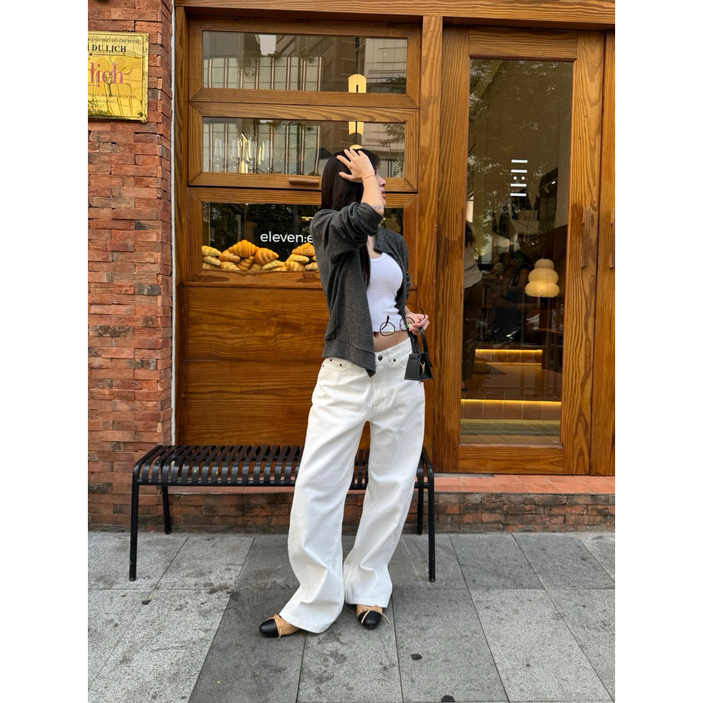 quần jean trắng ống suông / delou white jeans