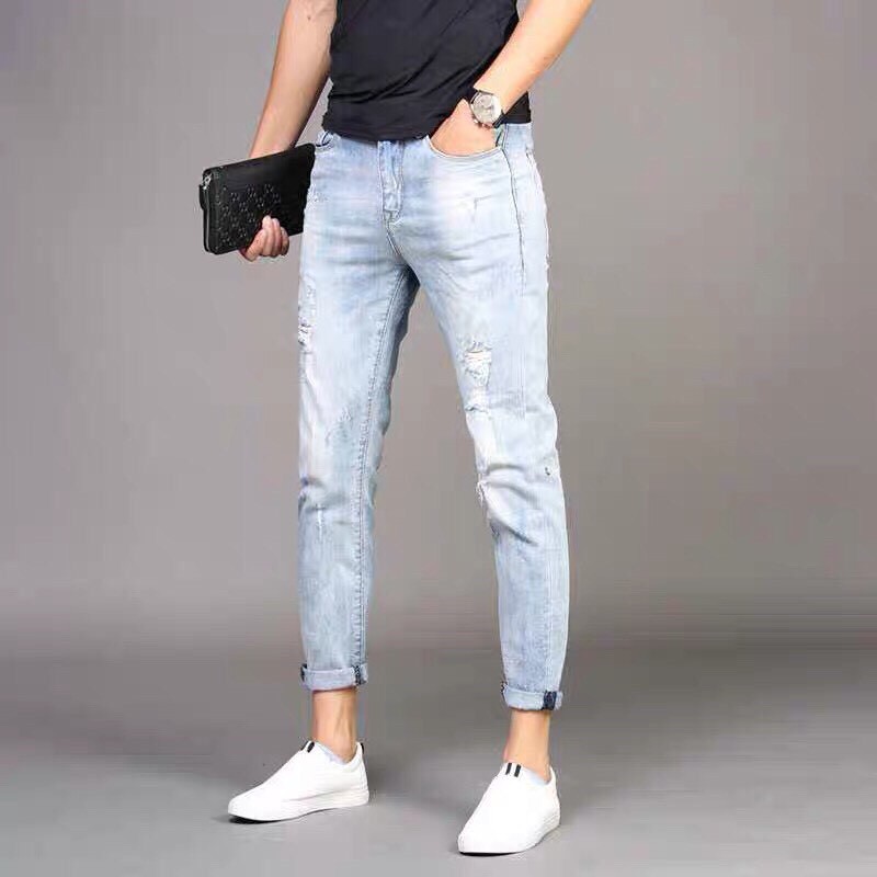 Quần jean nam co giãn xanh trắng sang trọng lịch lãm 8051
