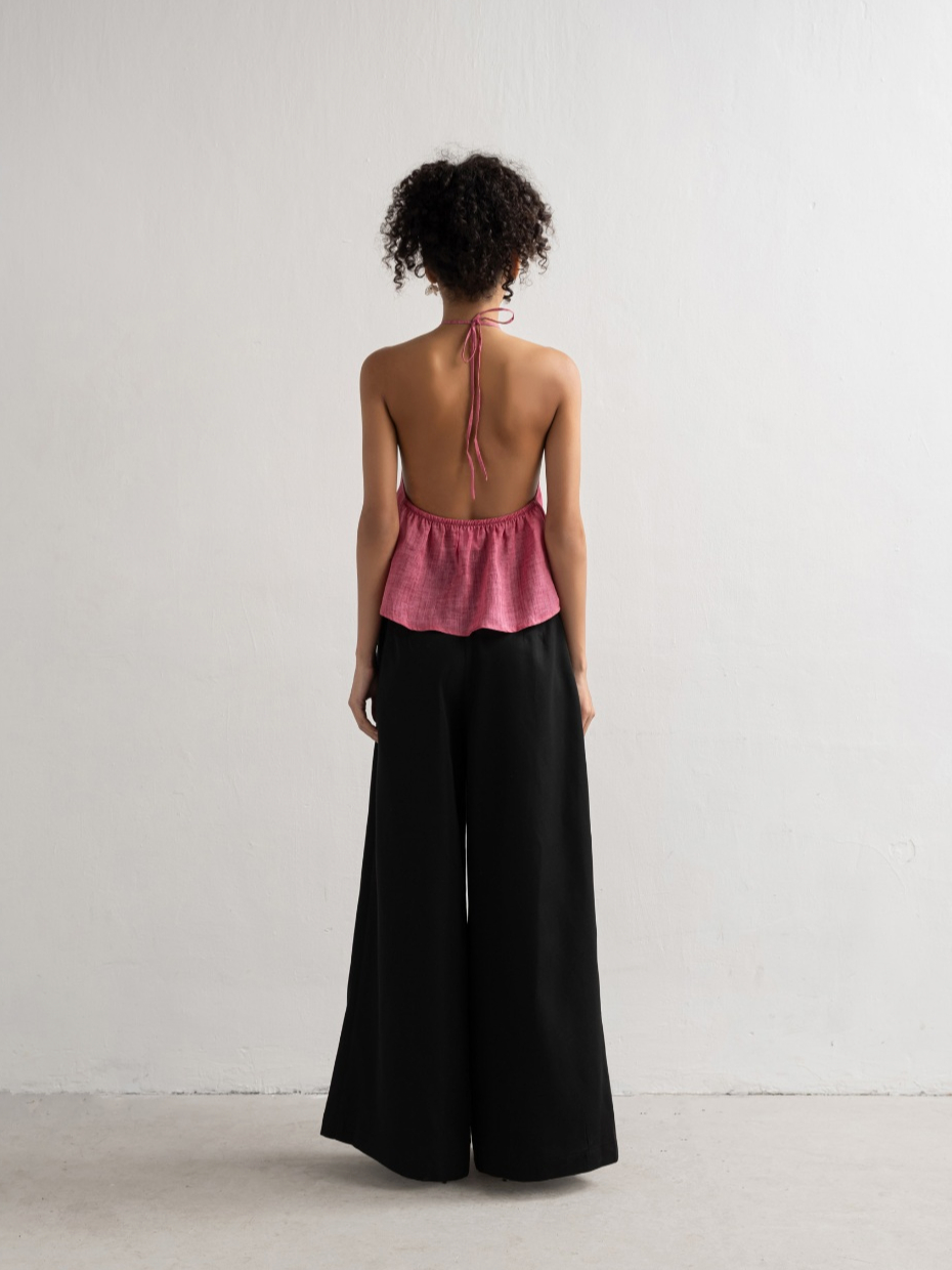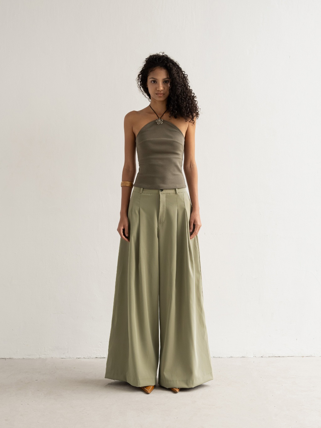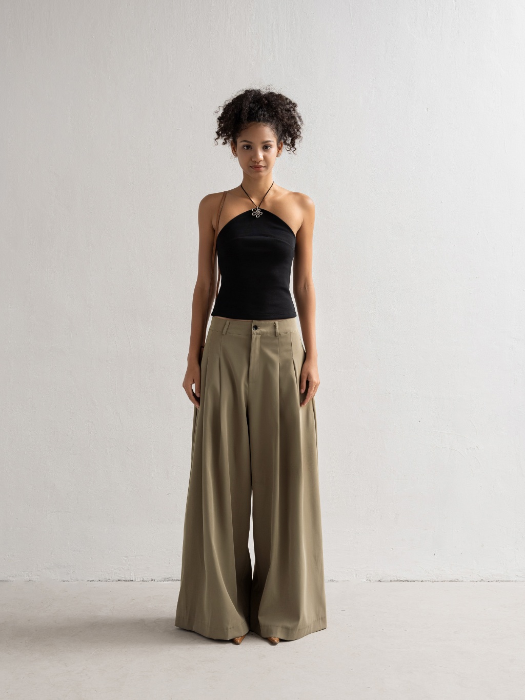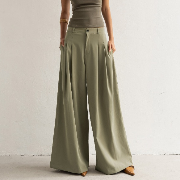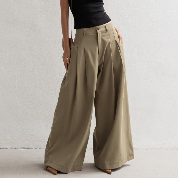 Quần khaki cạp cao dáng suông ống rộng xếp ly Skirt Trousers - oula studios