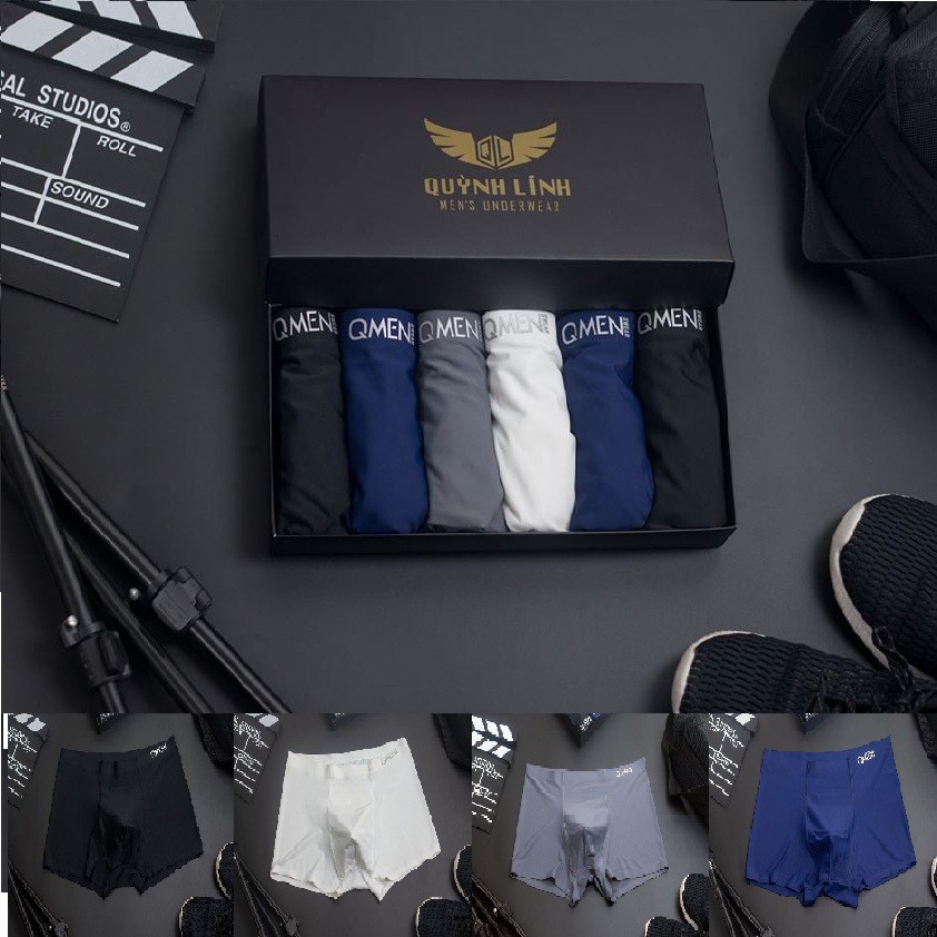 Quần lót nam thun lạnh Quỳnh Linh, Quần Xì sịp lụa đúc QMeen Boxer nam không viền