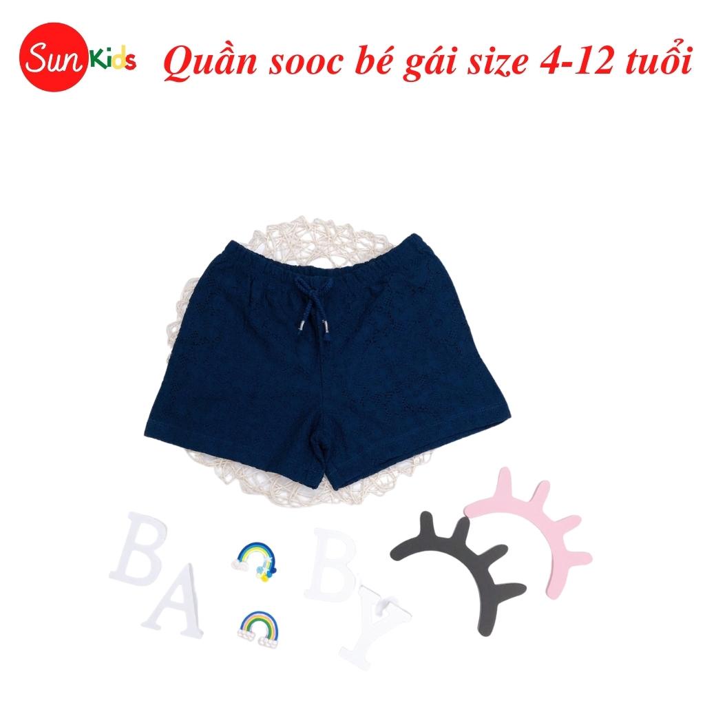 Quần short đùi bé gái size 4-12 tuổi SUNKIDS1, quần sooc bé gái chất ren và cotton , size 4-12 tuổi