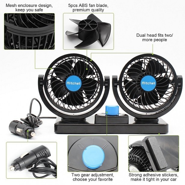 Quạt đôi mini thông minh 12V- thông gió cho xe hơi, xe tải xoay 360 độ chắc chắn