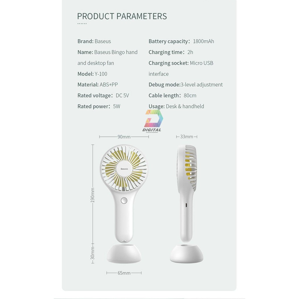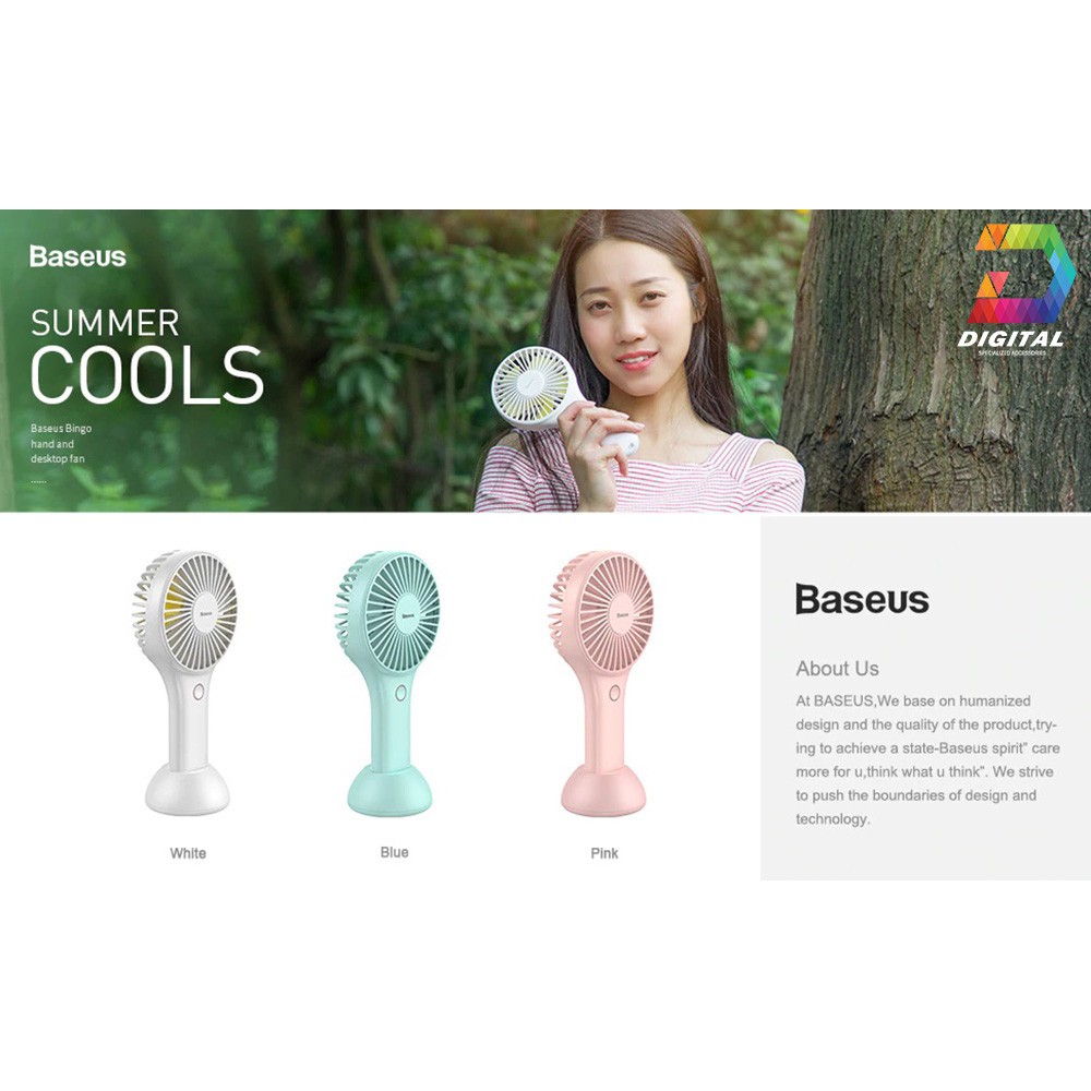 [Mã ELHA22 giảm 5% đơn 300K] Quạt Sạc Mini Cầm Tay Baseus Bingo 3 Chế Độ Làm Mát, Pin 1800mAh Kèm Chân Đế Để Bàn