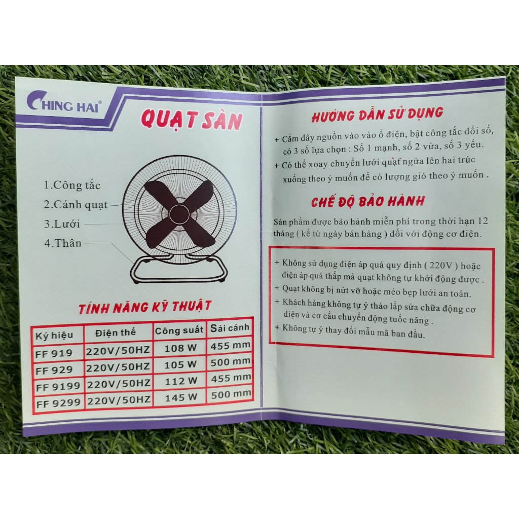 Quạt sàn Chinghai - FF-9299, cánh kim loại 500, quạt chân quỳ công nghiệp Đài Loan