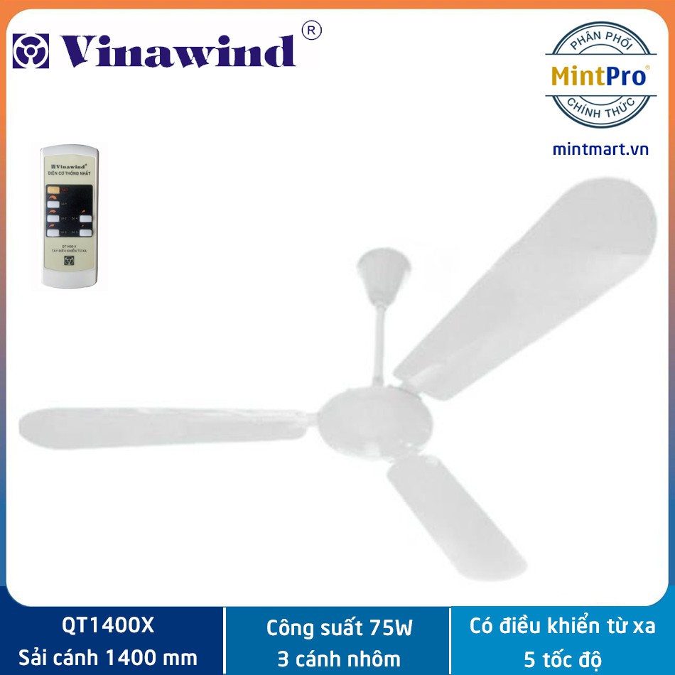 Quạt trần 3 cánh có điều khiển từ xa Điện cơ Thống nhất Vinawind QTT1400X - Sải cánh 1400 - Màu kem