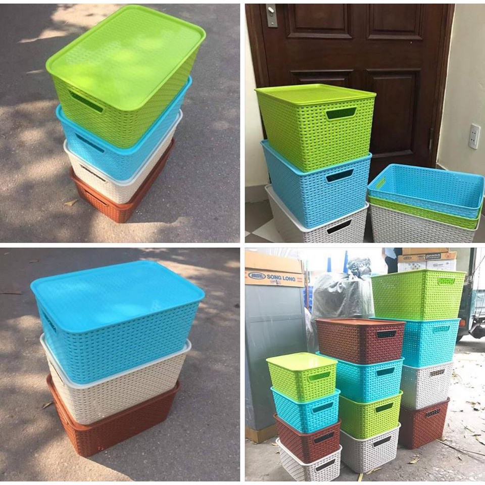 Rổ nhựa có nắp đậy Việt Nhật - Rổ (giỏ) giả mây đựng đồ chơi, quần áo có nắp kiểu Hàn Quốc các cỡ giá rẻ.