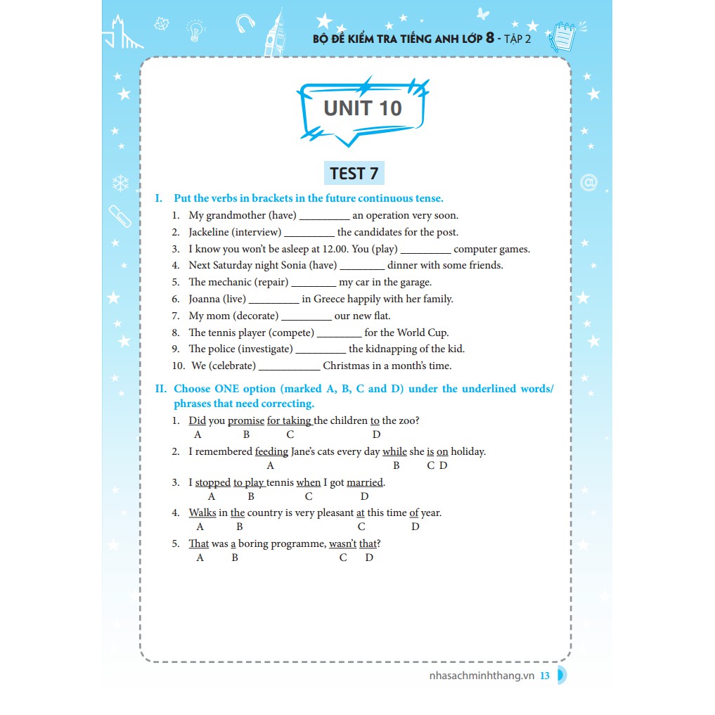 Sách - Bộ đề kiểm tra tiếng Anh lớp 8 tập 2 - Có đáp án