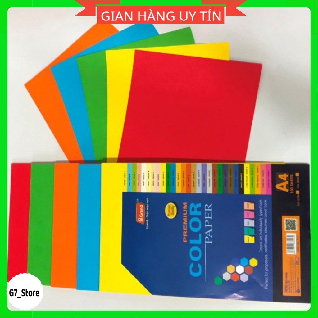 Tập 100 tờ bìa trộn 5 màu, bìa màu cứng A4 Thái Lan
