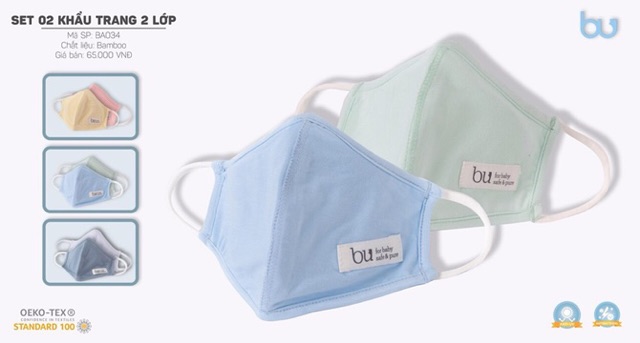 Set 2 khẩu trang kháng khuẩn vĩnh viễn hãng BU cho bé từ 6m- 5y