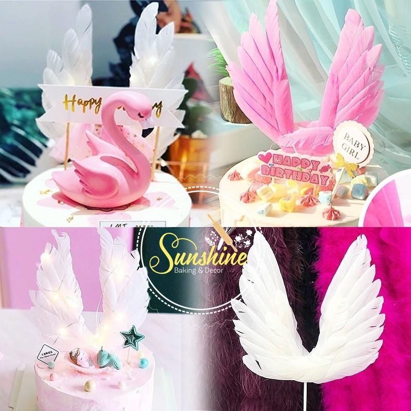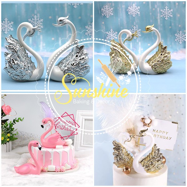 Set 2 Thiên Nga Hồng Hạc Nhũ Vàng Bạc Trang Trí Bánh Kem Sinh Nhật