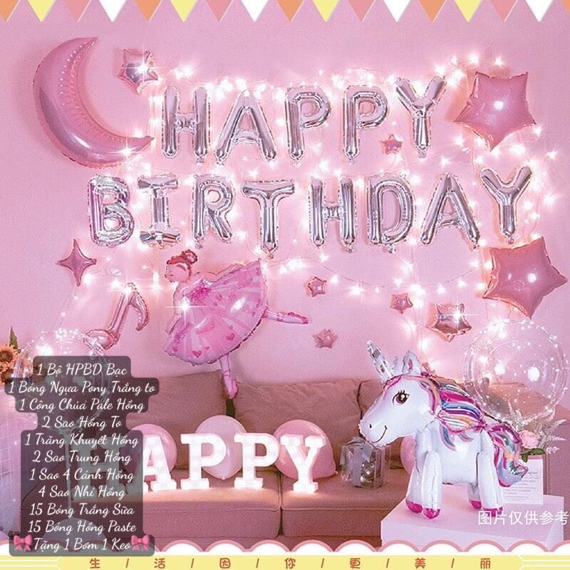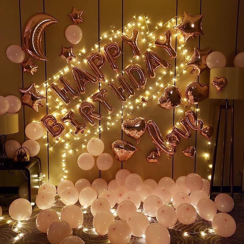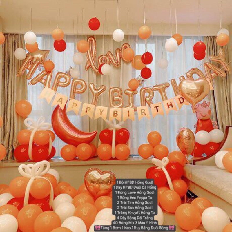 Sét bóng trang trí sinh nhật màu hồng gold( 30 bóng )