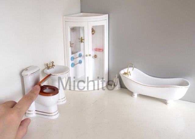 Set nhà tắm sứ mini cho búp bê tỷ lệ 1/12 - bồn tắm kim loại
